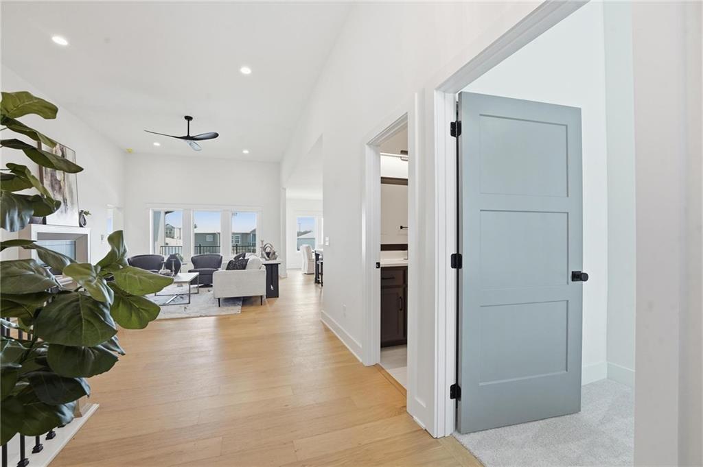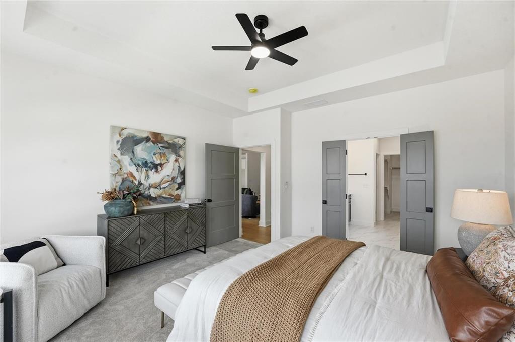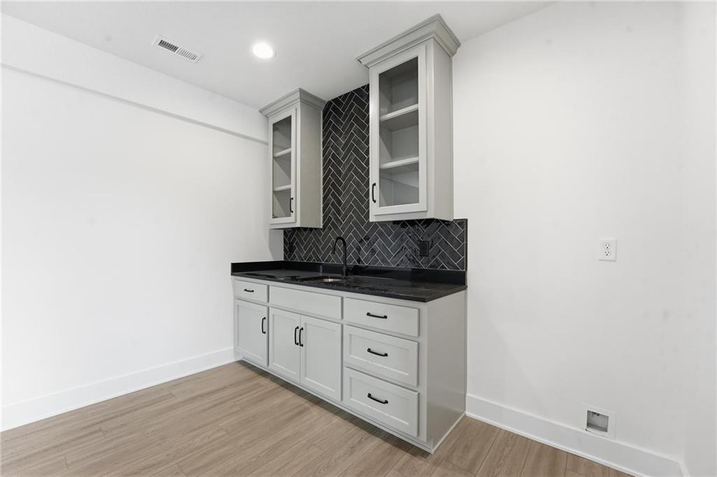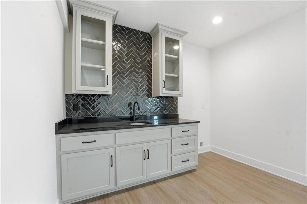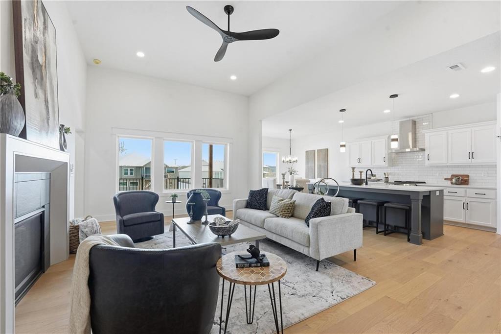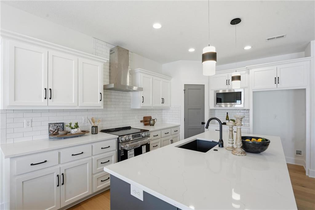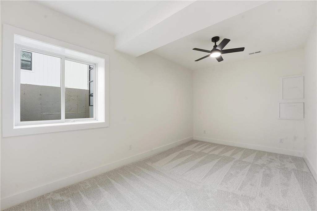 Come explore this recently finished reverse 1.5-story in Riverstone, perfectly situated to back to tranquil common space. With 3,028 sq ft, this home offers 5 bedrooms, 3 full baths, and a 3-car garage—a spacious design that blends comfort and style. Main Level Living: The primary suite and a versatile guest bedroom (currently staged as an office) anchor the main floor. Expansive windows line the back of the home, filling the great room and kitchen with natural light. Step out onto the covered deck to enjoy peaceful views. Lower-Level Retreat: A recreation room with wet bar, three additional bedrooms, and a full bath provide plenty of space for media, gaming, or entertaining. Exterior & Efficiency: Smart siding with stone accents enhances curb appeal, while the builder’s attention to energy efficiency ensures lasting value. This home combines modern design with functional living, offering room for guests, and gatherings. Don’t miss the opportunity to own a property that balances design, efficiency, and community living in one of Kansas City’s most desirable neighborhoods. Taxes, measurements, and square footage are estimated.