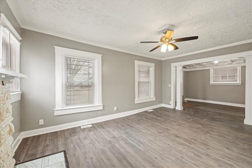 The high ceilings and wide open spaces in this fully renovated 5 bed 2 bath home offer plenty of room for every one to spread out. In addition to the multiple living areas the newer cabinets, newer counters, newer windows, etc throughout this home ready for new touches! Updated HVAC, electrical, plumbing and 3 year old roof. Come experience all that the revitalized Kansas City downtown has to offer while enjoying this quiet tree lined street with ample off street parking in back, privacy fence all around.