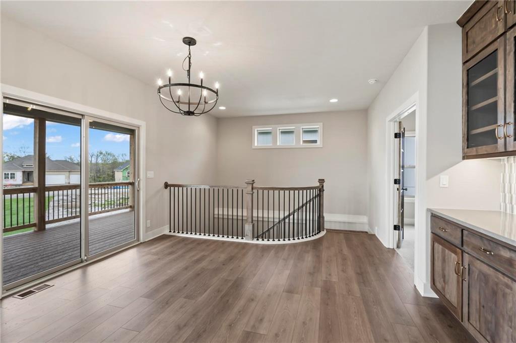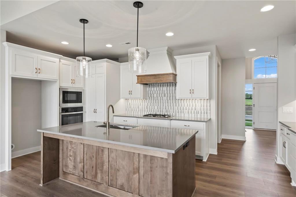 The "Ellenbrook II" Reverse by SAB Homes is here on a walkout lot with a covered deck & covered patio for amazing outdoor entertaining at its finest! As you enter through the grand covered porch into the foyer, you are drawn into the incredible natural light of the Great Room with a fireplace. The covered deck is off of the Great Room by the breakfast area for serene nights with your favorite beverage. The dining room is a splendid dining space just in from the front entry. The Kitchen has an island for your entertaining, ample counter space, S/S Appliances and walk-in pantry. The Primary En-Suite bedroom is tucked behind the Great Room. The primary bathroom has a soaker tub, double vanities and tile shower, leading into the walk-in primary closet. The main level laundry room next to the Primary hallway. Bedroom #2 has a walk-in closet and is on the opposite side of main level connected to a full bathroom with a shower over tub, that also connects to the mud room hall next to the entry from the garage. The lower level has 2 bedrooms, both with walk-in closets, full bathroom with shower over tub, Recreation Room, wet bar, half bath, ample storage and walkout to the covered porch to the beautiful back yard. All in the coveted Heritage Ranch, A Lambie-Rieke Community, with Amenities Galore such as state-of-the-art pool, clubhouse, trails, pickleball. play area, half-court basketball, Putting Green & ponds and so much more coming soon! This community provides a wonderful lifestyle and right next to the 1,238 Acre Heritage Park with Dog Park, Sports Parks, Golf, Lake, Trails and so much more! Contact Onsite Agents for Estimated Completion of homes on site, and design selections. Our Welcome Center Office is now open, located at LOT 65. Open 7 days a week! Welcome Home to Heritage Ranch - one of the last NEW Home Communities in Johnson County! SPEC HOME is Under Construction with an Estimated Completion JAN 2026 on LOT 68.