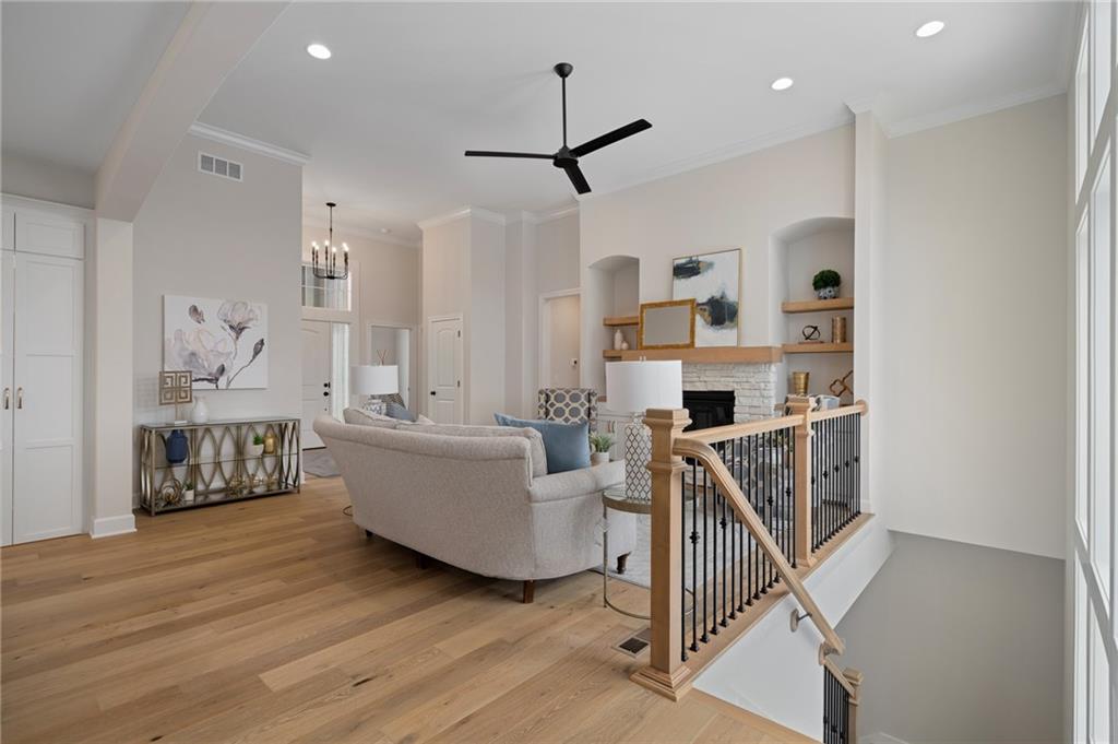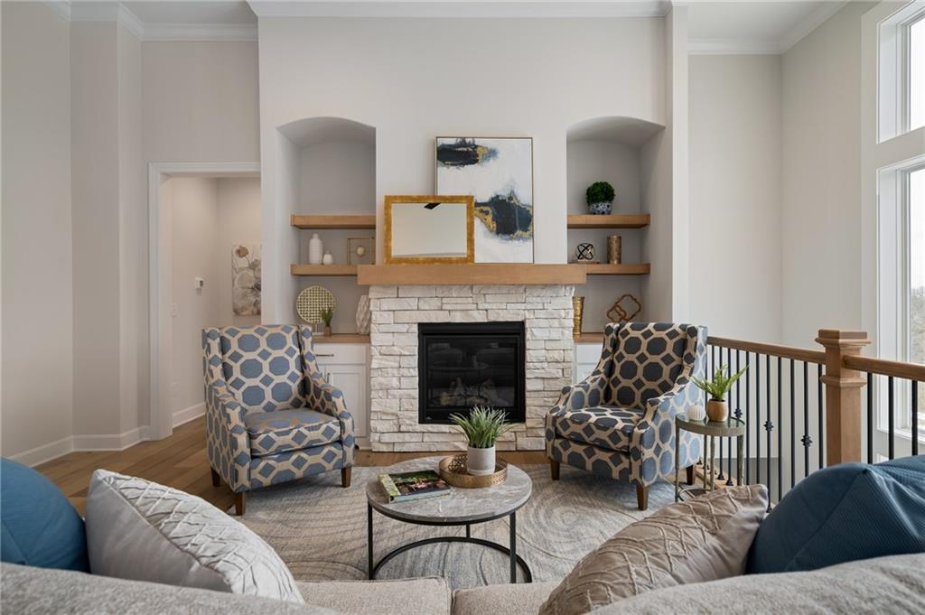 The HAMPTON VI Reverse 1.5 story by New Mark Homes is a standout plan with an inviting entry, tall ceilings, a wall of windows and a back staircase with a daylight lower level. Beautiful touches & details throughout. Kitchen has oversized island and gas cook top. Free standing tub in master bath. ***Home is in process and estimated completion in February 2026***Taxes are estimated. Pictures are of a similar home. Lakeview Ridge is a new build community just west of Lake Olathe with great homes started and fantastic lots available. POOL coming in 2026. You can get to the neighborhood off of Dennis & Houston with easy access from K7 or coming from Lakeshore. Our Sales Office is located 14271 Houston. Our development is right next to Lake Olathe and neighborhood feeds into Clearwater Creek Elementary, Oregon Trail Middle School and Olathe West High School.