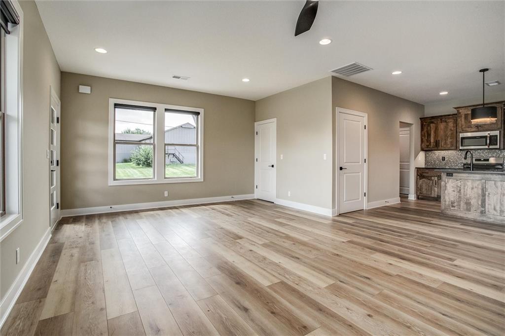 This extraordinary property offers a rare combination of a comfortable two-bedroom, one-bath residence and an expansive garage and loft designed for the collector, professional, or entertainer. The exterior makes a bold statement with black metal siding, Aspen dimensional stone accents, and metal roofing, enhanced by a deluxe landscaping package and sprinkler system. The centerpiece is the garage, providing more than 1,500 square feet of finished space with three oversized 12’ x 12’ doors and jack shaft openers for maximum clearance. Built with the enthusiast in mind, it can easily accommodate ten or more cars without lifts. Designer epoxy floors, wrought iron railings, high-intensity LED lighting, and a massive industrial fan highlight the space. The main level includes a guest bath with custom steel sink and tile splash, a dry bar with dual-drawer refrigerator, a flex room with French doors, and structural concrete floors ready for lifts. Comfort is ensured with a separate heating and cooling system, humidifier, 50-gallon water heater, and even a 240V RV outlet. Overlooking it all, a dramatic entertainment loft provides the perfect vantage point for showcasing a collection. This inviting space includes a full bar with granite tops, sill sink, ice maker, dual refrigerators, custom cabinetry, and distinctive finishes, making it ideal for entertaining or relaxing. The living quarters feature two bedrooms with ceiling fans, a hall bath with granite and undermount sink, and a full kitchen with granite counters, tile backsplash, and stainless appliances. A cozy fireplace with a designer trim wall anchors the soundproofed living area, which includes laminate flooring, utility closet with washer/dryer connections, built-in storage, and its own dedicated HVAC system. In addition to a residence, this property is perfectly suited as a luxury garage and home office, offering a unique opportunity to live, work, and showcase in one remarkable space.