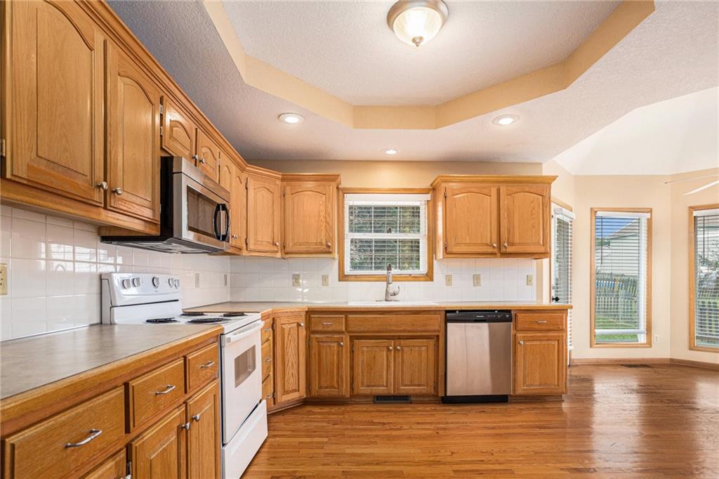 Welcome to this charming, move-in ready home offering 3 bedrooms, 2.5 bathrooms in the Brooke Haven community! The main living area features a spacious living room with vaulted ceilings and a cozy gas fireplace. The spacious dining area is right off the chefs kitchen, perfect for entertaining. All bedrooms are conveniently located on the upper level, along with the laundry room. Unwind in the primary bedroom, which includes an en-suite equipped with double vanity, jetted tub, separate shower and a walk-in closet. The finished lower level provides a versatile family room and a half bath, with additional storage space in the sub-basement. The large backyard is fully fenced and features a great deck just off the kitchen, perfect for summer barbecues and entertaining. Located in a great Kearney subdivision, this home is ready for you! Schedule your showing today!