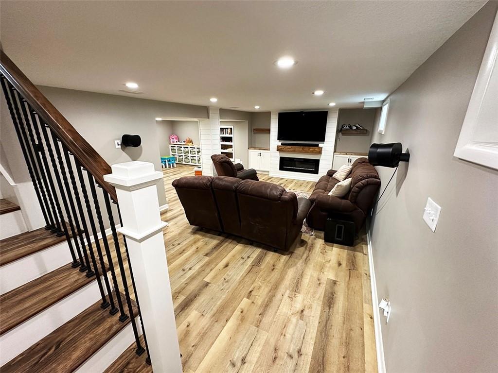 No HOA! Great sized corner lot backing to trees. High end Upgrades!!!! So many amenities and extras you won't find in many homes!!! All Main Floor Living!!! Remodeled! 3 Car Garage! 4 Bedrooms (4th could be great office/den/social media room) Wait till you see all the accent walls, updated bathrooms with oversized showers, basin sinks, and more. Master bedroom has private full bath and HUGE walk-in closet set up. Fenced yard backs to wooded area. Popular Excelsior Springs and feel like you are not in town.
