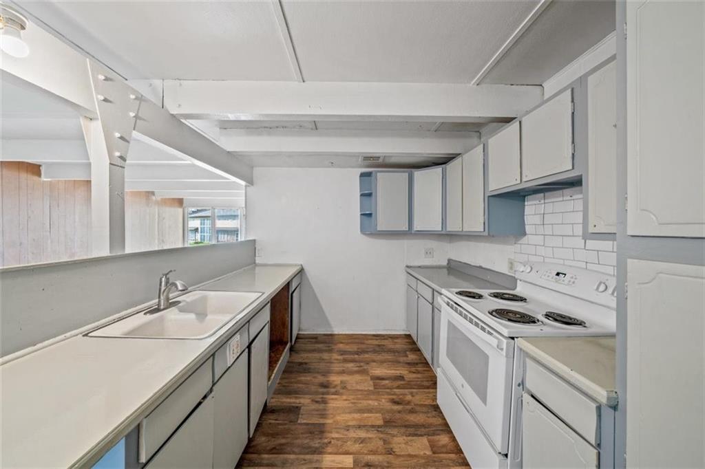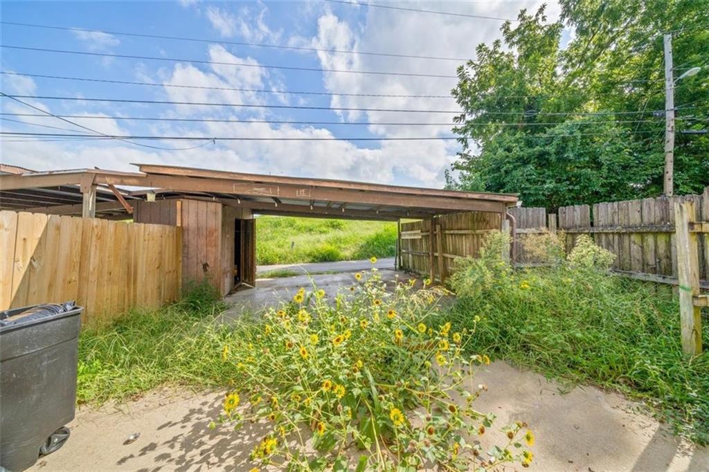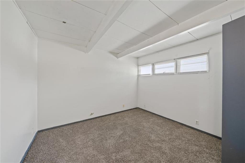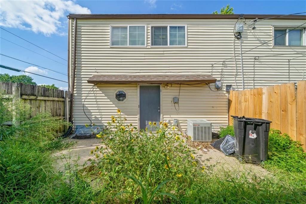 This end-unit townhouse blends mid-century design with an abundance of natural light and functional space. The front entry showcases dramatic floor-to-ceiling windows and exposed beams, creating an open and airy living room that flows seamlessly into the dining area and kitchen. The kitchen offers plenty of cabinet storage and counter space, with sightlines into the main living areas, and a half bath conveniently serves the main floor. Upstairs, you’ll find three bedrooms with fresh carpet and ample light from modern horizontal windows, along with a full bath. A striking metal staircase anchors the interior and adds architectural character. The lower level features a basement with additional space that can be used for storage, hobbies, or entertainment, including a retro-style bar area. The property also includes a private fenced backyard with direct access to covered parking. As an end unit, this townhouse offers extra privacy with green space on one side. Located near State Avenue, this home provides quick access to I-70 and I-635, along with nearby shopping, restaurants, and services.