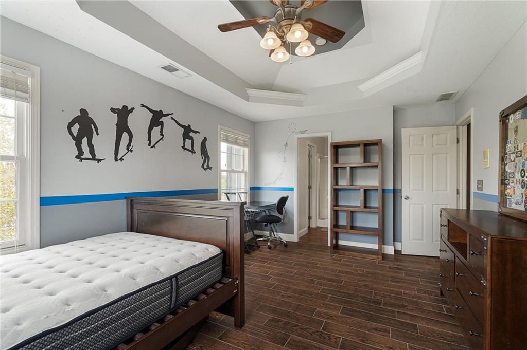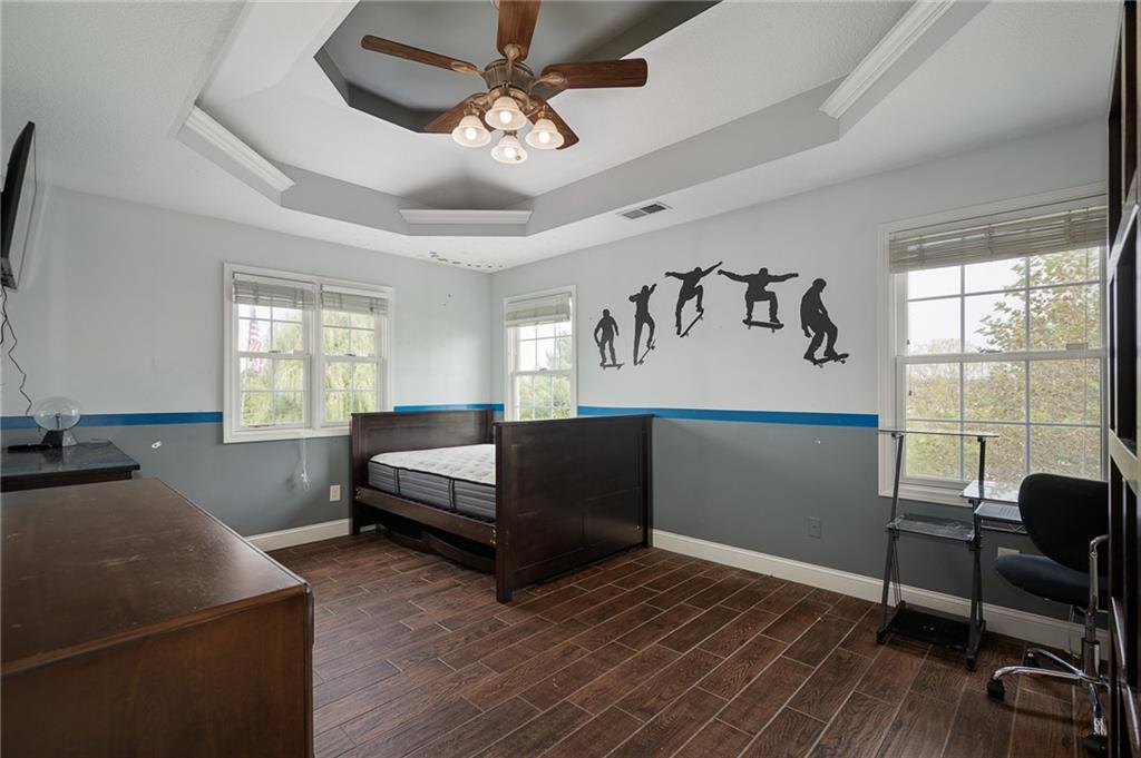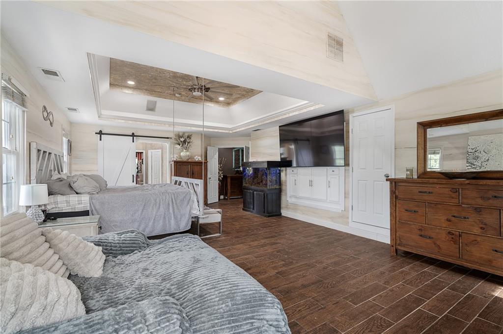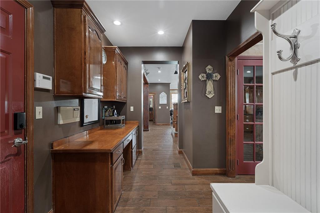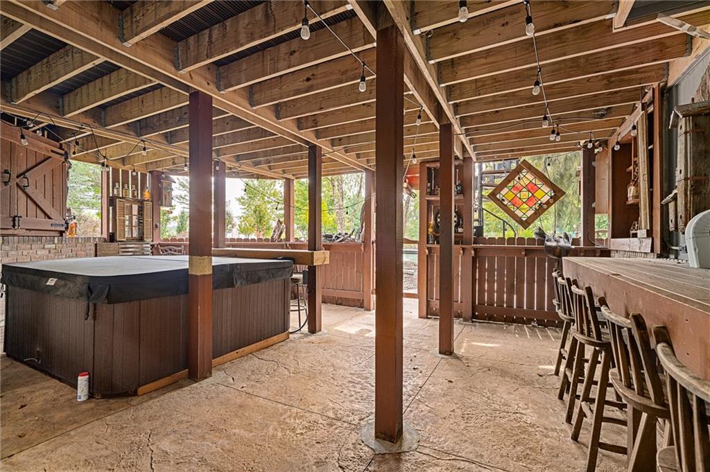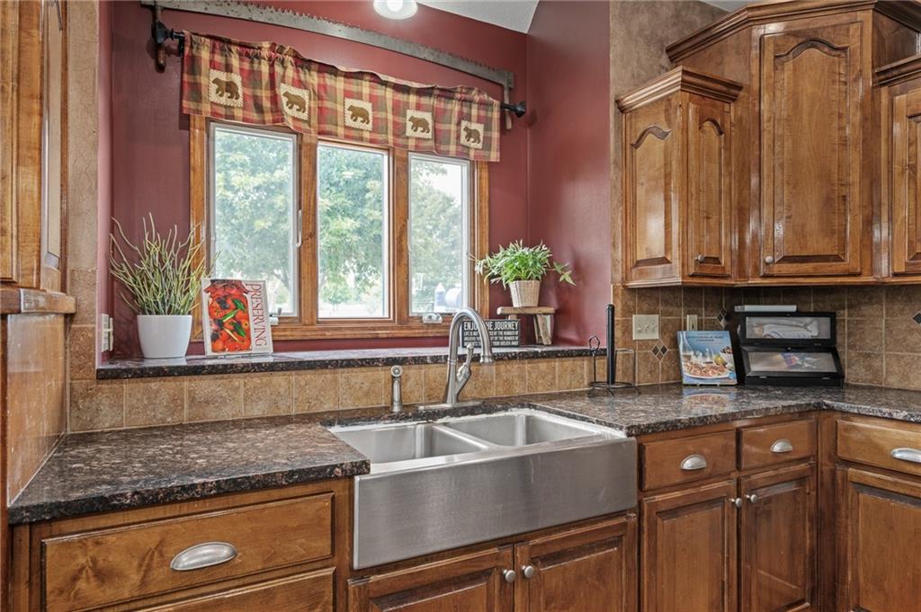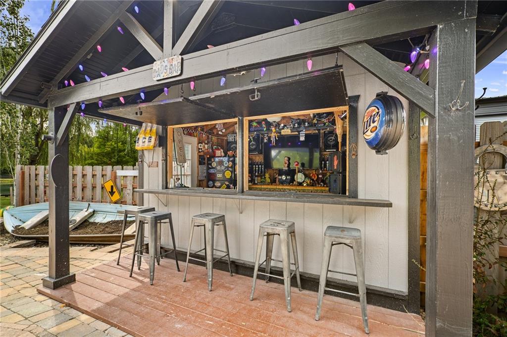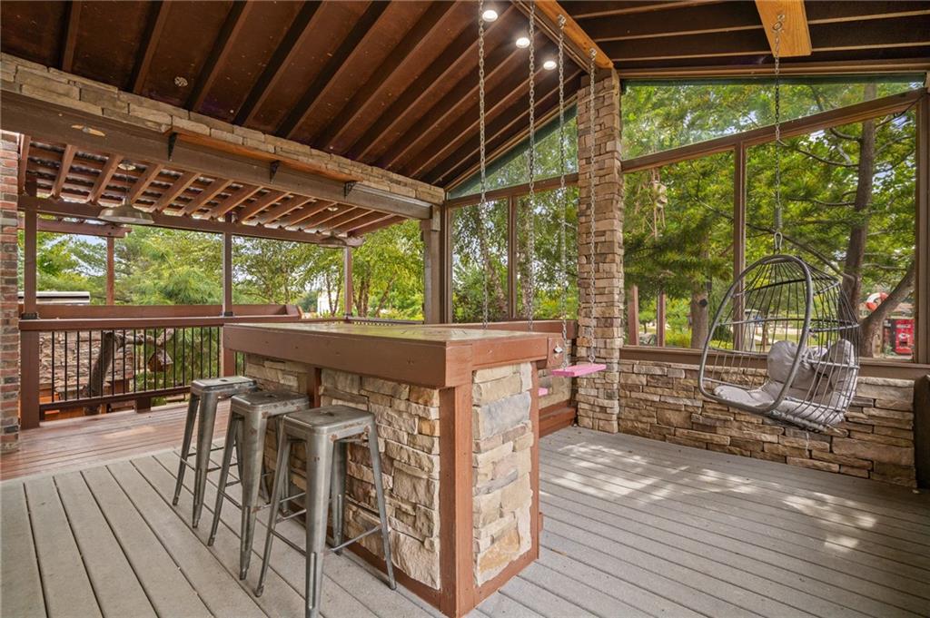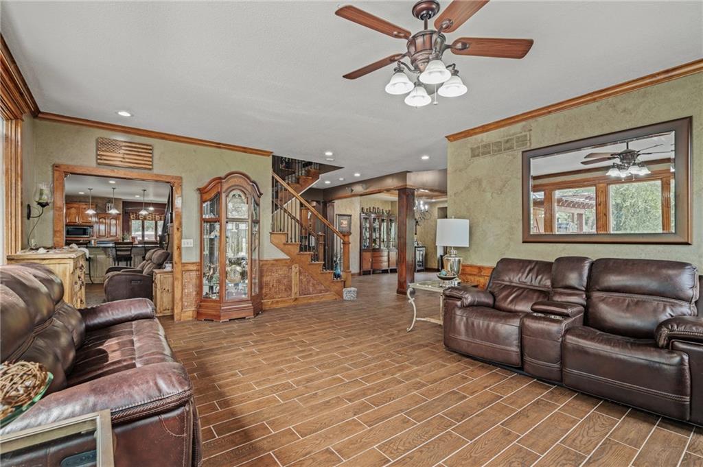 Live, work, and play like never before on this fully fenced, gated 5-acre estate on blacktop in Lone Jack—designed for entertaining, outdoor living, and enjoying the land your way. Whether you're into fishing, paddleboarding, raising chickens, gardening, hosting parties, or running a business from home, this unique property makes it possible. Three scenic ponds set the stage—one with sandy beach, dock, playhouse with hurricane deck, and zip line; another with a 12-foot stone waterfall framed by weeping willows. Outdoor living includes a pool, festive bar, outdoor shower, firepits, fountains, basketball court, and striped parking for nine. A vintage merry-go-round, playground, and wisteria-draped pergola add whimsy, while mature landscaping and unique trees create a lush, park-like setting. Grow and raise what you love: a fenced livestock area with shelters and duck pond supports chickens, goats, or a horse. A large raised garden with drip irrigation and auto-watering is ready for your green thumb. Built in 2006, the two-story home offers comfort and space with hard-surface flooring on the main level, five fireplaces, formal dining, home office, and hearth room kitchen with island seating and Viking six-burner cooktop. French doors open to a fenced dog yard with pergola and hibachi grill—perfect for pets and casual cookouts. Upstairs, four bedrooms each have private baths. The oversized primary suite includes a fireplace, sitting area, walk-in closet, and private covered balcony with mini split—your retreat above it all. The walkout lower level is built for fun and function, featuring a theater, arcade, full bar, non-conforming fifth bedroom, full bath, and access to a saloon-style patio with hot tub and firepit. A newly built outbuilding adds flexibility—with concrete floor, two oversized overhead doors, built-in compressor, and plumbing for future living quarters. Ideal for equipment, hobbies, or home-based business use.