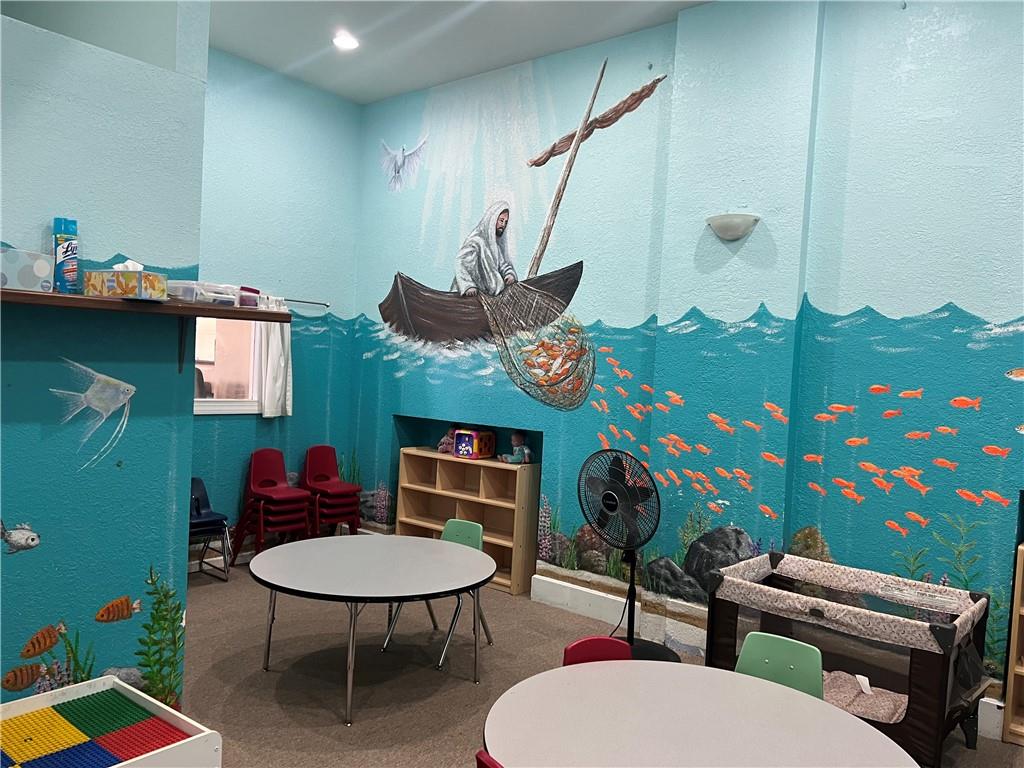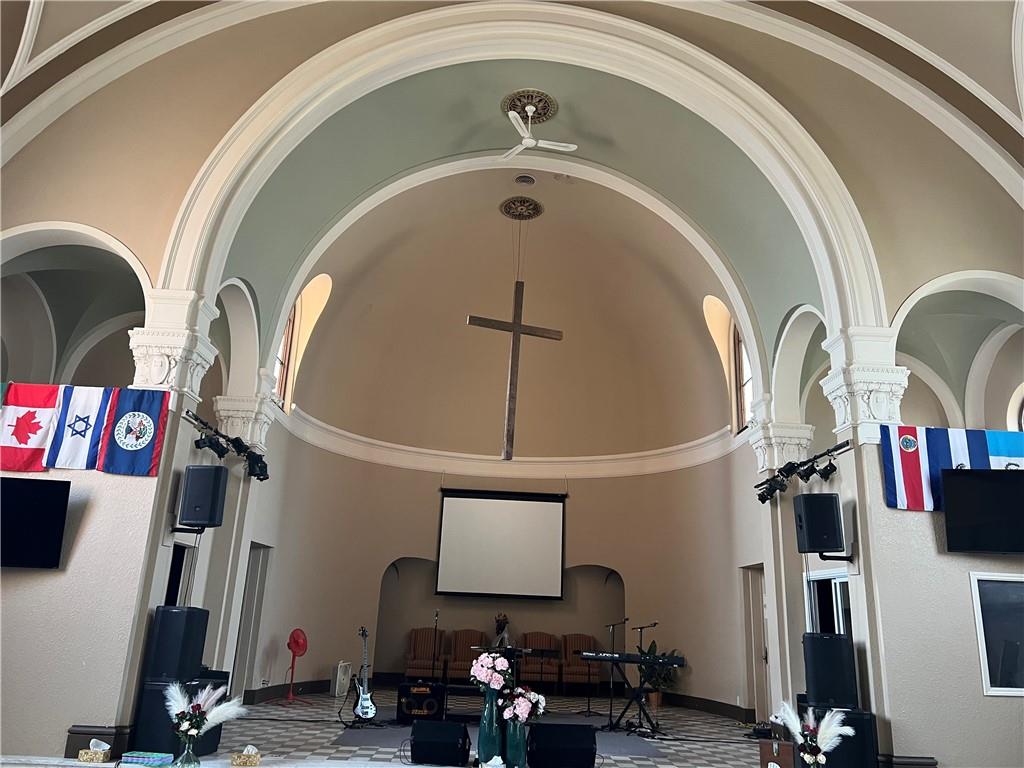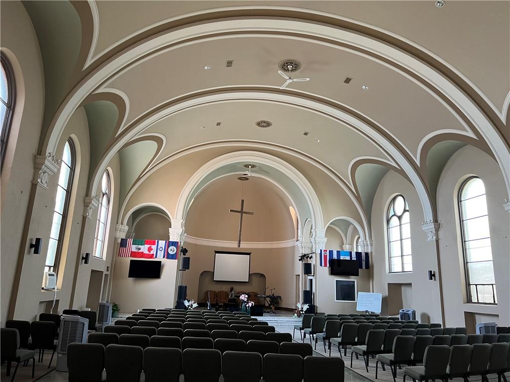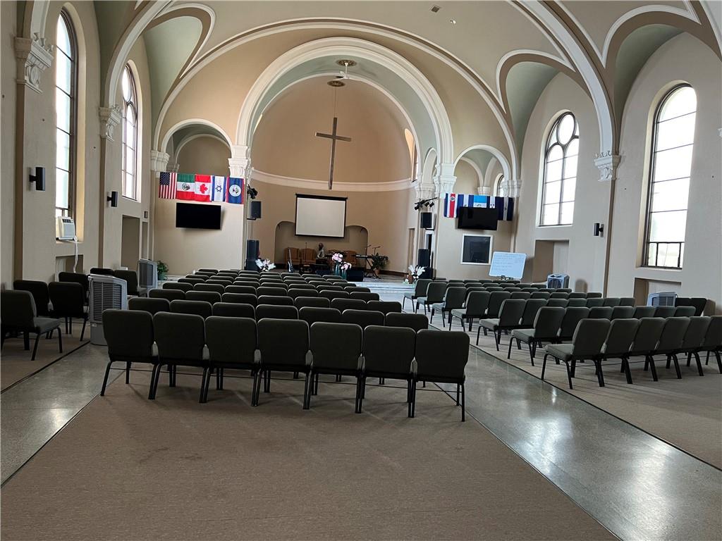 Just east of downtown sits a stunning Spanish Revival style church. The 17000+ sq ft church was erected starting in 1925 at a cost of over $90,000. (That's equivalent to over $1.6 million in today's dollars.) It was a masterpiece with ornate brickwork, majestic marble columns, detailed stonework, breathtaking stained glass windows, framed between twin bell towers. Inside you would find the artistry of the Italian fresco master Dante Costentino, who spent months hand painting frescos on the arched ceilings in the same manner as Michelangelo. Sadly before the church was sold the stained glass & ornate artifacts were stripped out of the building. A matching Colonial Revival rectory was added later to complement the architecture of the church. It included 6+ bedroom & 5 bathrooms with 3346 finished sq ft. In 2008 the ROCK undertook extensive renovations to the church to remove the dropped ceiling which had been added by the Mormons when they rented the building. Some of the plaster was damaged resulting in the majority of the frescos being painted over. The original floors were uncovered. A nursery was added, additional seating was added on the 2nd floor, new HVAC systems were installed. The bathrooms were redone, new kitchen downstairs, with serving area, storage areas were added, with showers downstairs, new bathrooms, the basement beams were exposed and painted. Prior to listing the property the church was tuckpointed, the gutters were replaced and new downspouts were added, drainage was addressed, the roof on the rectory was repaired, and new downspouts, and gutters added. The seller would like to sell this property with the school next door (circa 1960) with 20,0926 sq ft, 6 classrooms + library, commercial kitchen, cafeteria, large gym, office. Along with 14 contiguous vacant lots along 9th Terrace. These properties are in an Opportunity zone and are eligible for grants, tax credits, etc for a developer adding affordable housing. See MLS # 2575051 & 2574584