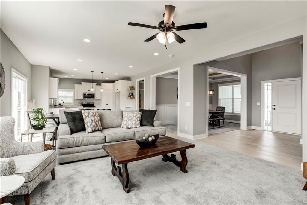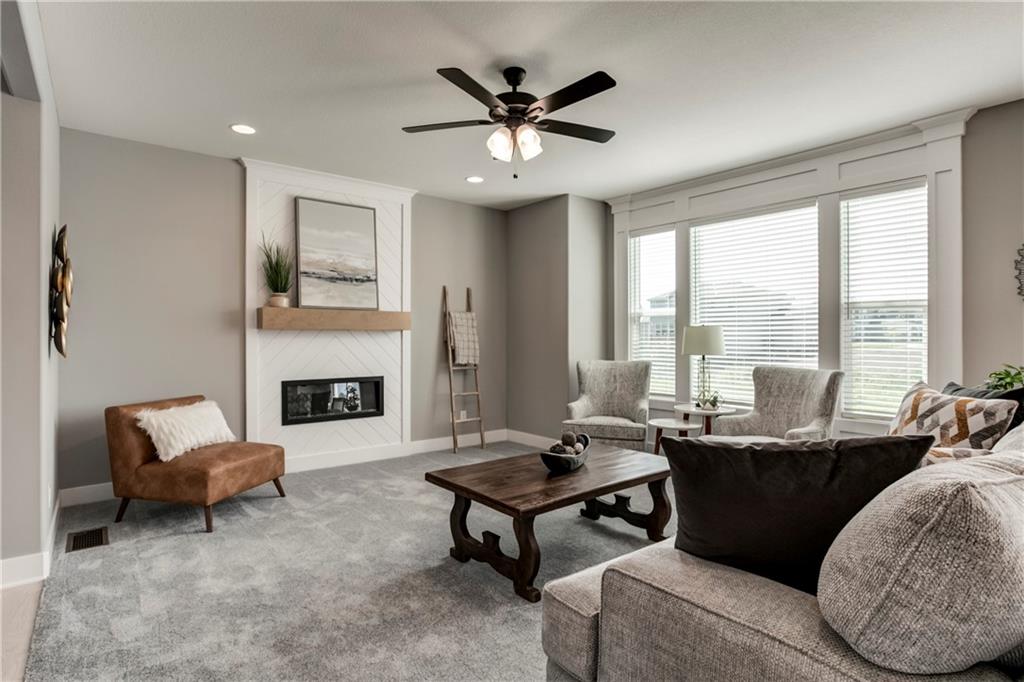 Beautiful Wesley III on an incredible lot. Daylight basement on a large pie-shaped cul-de-sac lot. Includes a composite deck with stairs to grade. The home backs to green space that includes a detention pond viewable; from the second floor and deck, and trails that connect to the area fishing lake. The kitchen includes an extended jewel-tone enameled island, a white enamel cabinet surround, and stained floating shelves for accents. Massive pantry with face-framed shelves. Matte Black plumbing faucets and door hardware. Free-standing tub, face-framed master closet shelves, color-changeable LED lighted vault in Master Bedroom, double doors to the master bath. Cordless faux wood BLINDS are included, and a 3-car garage with painted and insulated interior walls. Garage door OPENERS with a keypad are included. Sprinkler System, extended front porch, water views from the front porch and the deck. Porch is perfect for a porch swing and chairs. Upgrades included: Extensive custom trim work. Boxed stained beams in the dining room, a custom fireplace with a linear, electric, heat producing, fireplace insert with stained mantle, a trim accent wall in the stairwell with a built-in mirror, a boot bench with upper cubbies, and a built-in storage drawer, upgraded kitchen backsplash. Enjoy the subdivision playground, trails, fishing lake, fire pit, picnic shelter, trails, and HEATED pool with splash zone and slide, also includes an extended pool season (Open until temps drop to late at night). Taxes and Sq. Ft. are Estimated.