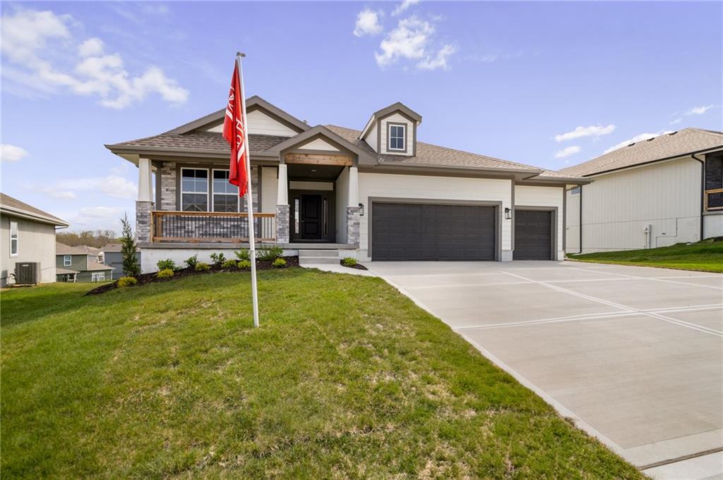 Discover the epitome of modern luxury in this newly constructed Apex reverse 1.5-story home by Prieb Homes. Situated in the serene Woodland Hills community, this residence offers 4 bedrooms, 3 bathrooms, and 2,751 square feet of meticulously designed living space. Step into an expansive open-concept main level adorned with soaring ceilings, a striking stone fireplace, and abundant natural light. The gourmet kitchen is a chef’s dream, boasting a large island, painted cabinets, stainless steel appliances, and a walk-in pantry. Enjoy seamless indoor-outdoor living with a covered deck accessible from the main living area. The main-level primary suite serves as a private retreat, featuring a spacious walk-in closet and a luxurious en-suite bathroom with a large walk-in shower. An additional bedroom and full bathroom on this level provide comfort and convenience. The finished walkout lower level includes two more bedrooms, a full bathroom, and a versatile recreation area—ideal for entertaining or relaxing. High-quality finishes such as hardwood, tile, and carpet flooring enhance the home’s elegant appeal. Additional highlights include a 3-car attached garage, and in-ground sprinkler system. Located within the Olathe School District, with Woodland Elementary, Prairie Trail Middle, and Olathe Northwest High School nearby . This exceptional home is ready for occupancy within 30–45 days. Don’t miss the opportunity to make this exquisite property your new home.