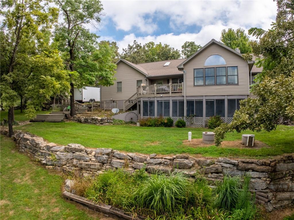 Lake Viking Waterfront Retreat! Shaded by beautiful mature trees and sitting right on the water, this Lake Viking retreat is built for lake living and making memories with the whole gang! Inside, there’s room for everyone: 4 bedrooms & 4 baths, including a roomy primary suite, a fun upstairs bonus room, plus a quiet non-conforming bedroom, and a giant basement bunkroom. Add in a huge family room with a wet bar and a wood stove, and you’ve got entertainment covered. Love extras? How about a sunroom, a great room with a cozy fireplace, a screened porch just steps from the shoreline, and plenty of places to relax after a day on the water. And oh, the lake life! Your very own oversized 1-well dock with a boat lift and a massive swim platform that's built for swimming, fishing, and all-day fun in the sun. Toys? No problem. There’s a 2-car attached garage plus a lower level garage - perfect for water toys, a bonus outbuilding with even more garage space AND a loft—perfect for storage now or future expansion later. This isn’t just a house. It’s a lake lifestyle—room for everyone, space for everything, and the water right at your doorstep. Pack your crew and jump in… the lake is calling!