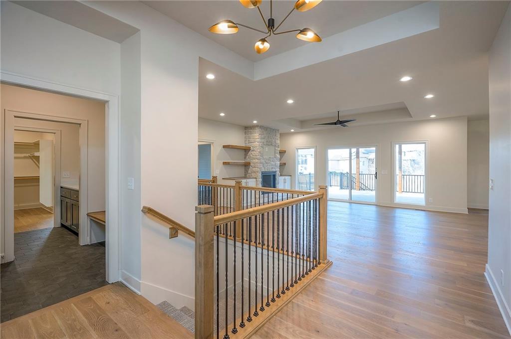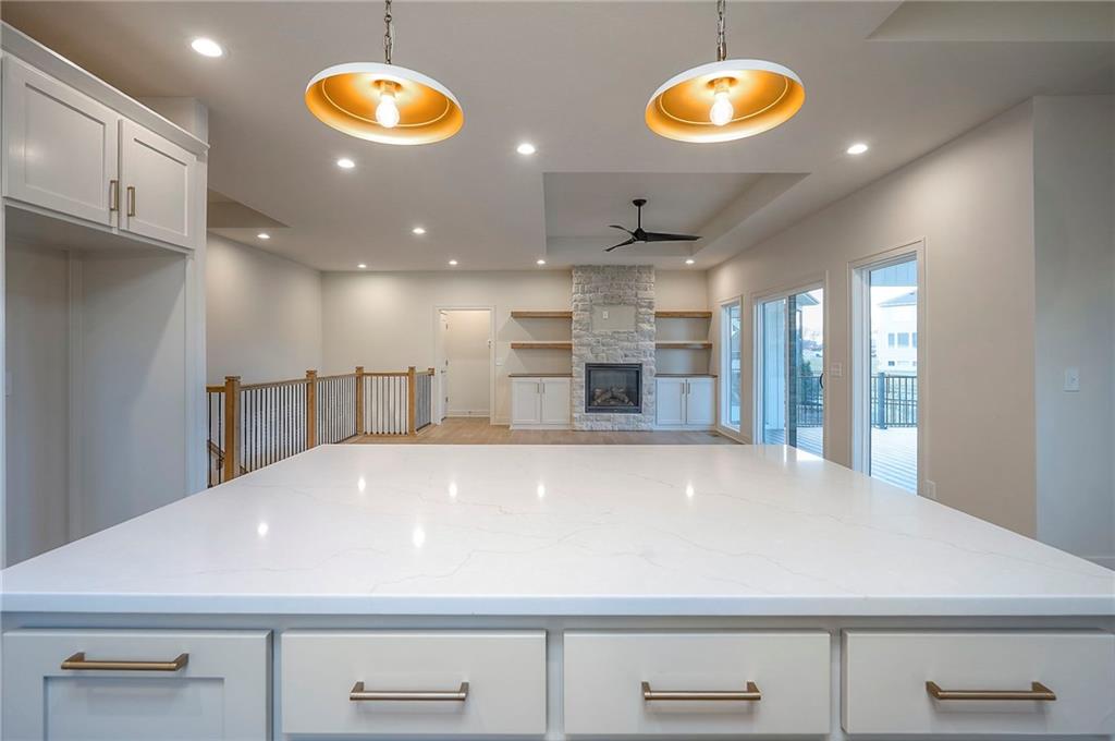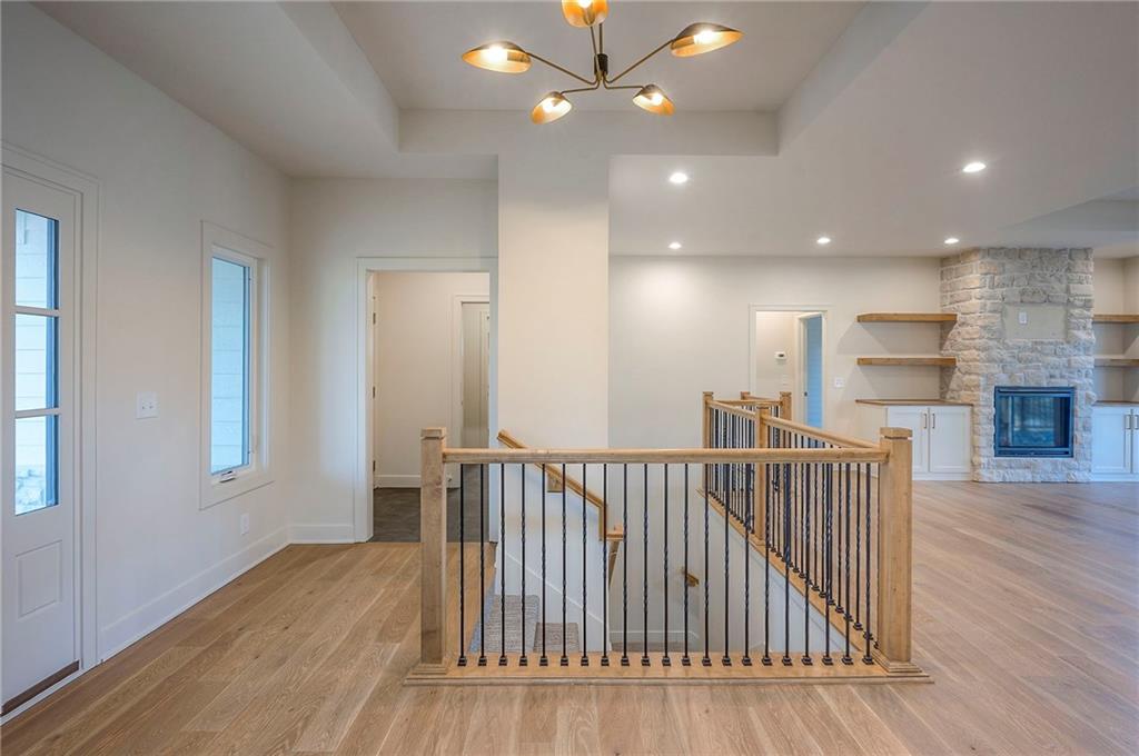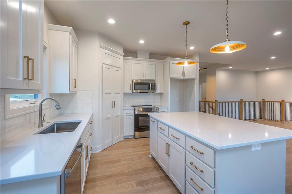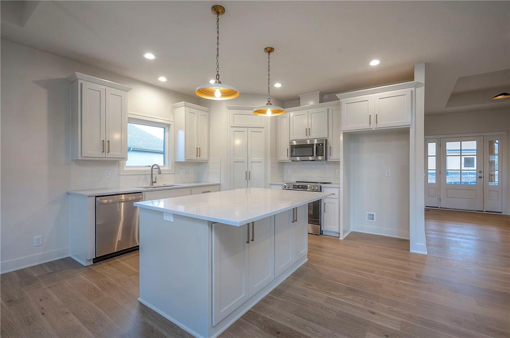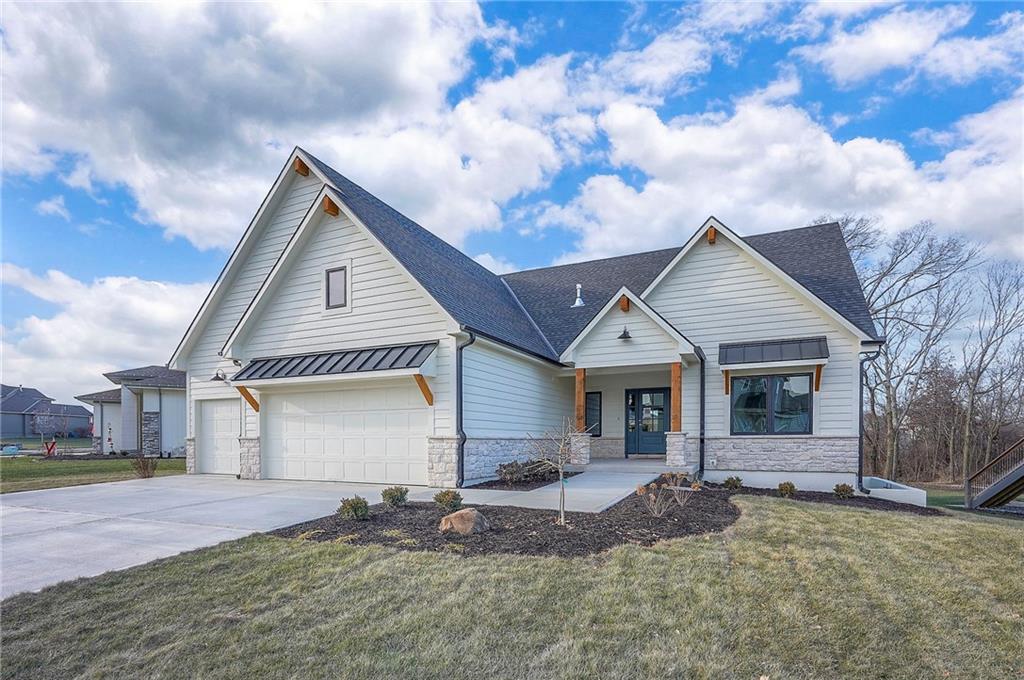 Ready Now! The Addison Reverse Plan by Brian Scott Homes – Lot 99 Boulder Hills | Backing to Trees & Trails |Walk-up/Walk-out Welcome to the Addison, an exceptional reverse 1.5-story home located on coveted Lot 99 in Boulder Hills, offering a rare walk-out/walk-up lot that backs to mature trees and scenic walking trails. This thoughtfully designed 4-bedroom, 3.5 bathroom home is ready now to enjoy your backyard oasis. Discover a spacious, open layout with high-end finishes and custom details inside. The gourmet kitchen is a dream, featuring custom cabinetry, quartz countertops, a large center island, and a walk-in pantry. The adjacent great room showcases a stunning stone fireplace and plenty of space for entertaining. Walk out from the main level to a huge covered deck—perfect for enjoying peaceful, treed views year-round. The front bedroom welcomes natural light through oversized windows, while the primary suite boasts a custom feature wall and direct access to the deck. The spa-like primary bathroom includes dual vanities, a freestanding tub, and a luxurious walk-in shower. You'll love the generous walk-in closet conveniently connected to the laundry room. The oversized garage is a standout feature, measuring an impressive 24.6' x 29.6' with a 6' x 7' bump-out—perfect for your extended truck, workbench, or recreational gear. Downstairs, the walk-out/walk-up lower level offers a large recreation room, two additional spacious bedrooms, and a full bathroom—ideal for guests or family fun. This is the last available home in Boulder Hills backing to the private tree line—don't miss your chance to own in this premier community! Boulder Hills Amenities Include: a beautiful pool with a waterfall, an outdoor kitchen area, walking trails, a playground, a pickleball court, and a community clubhouse. See why Boulder Hills is one of the most desirable neighborhoods around!