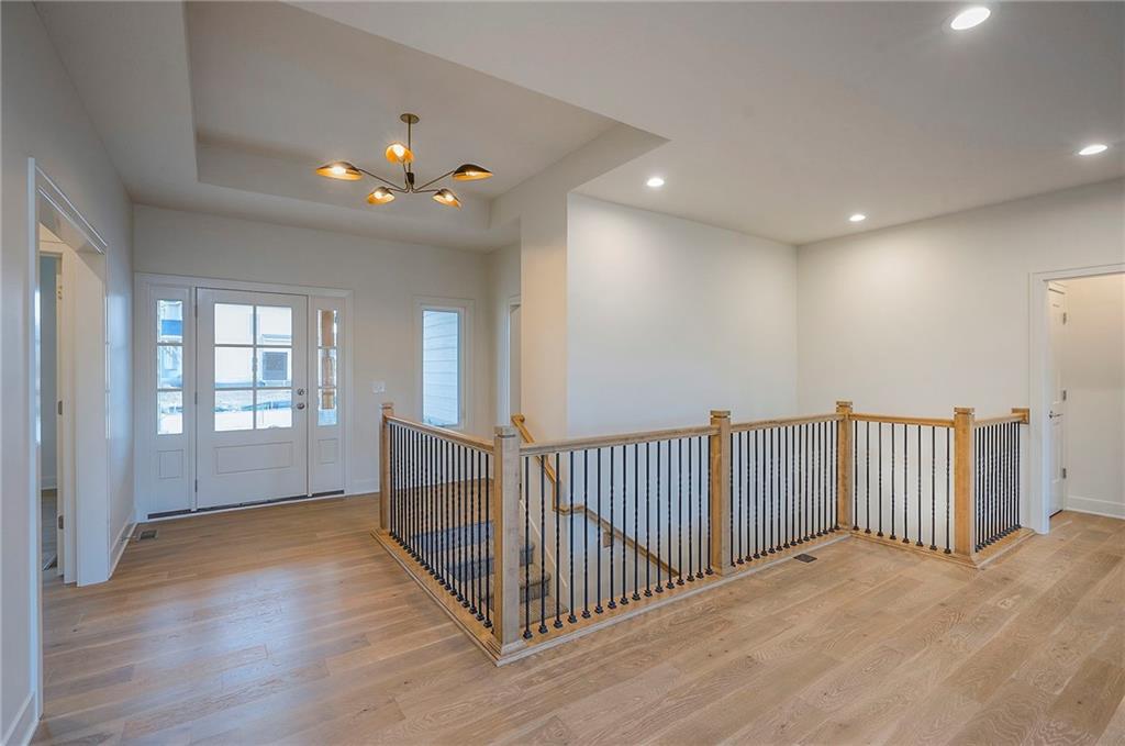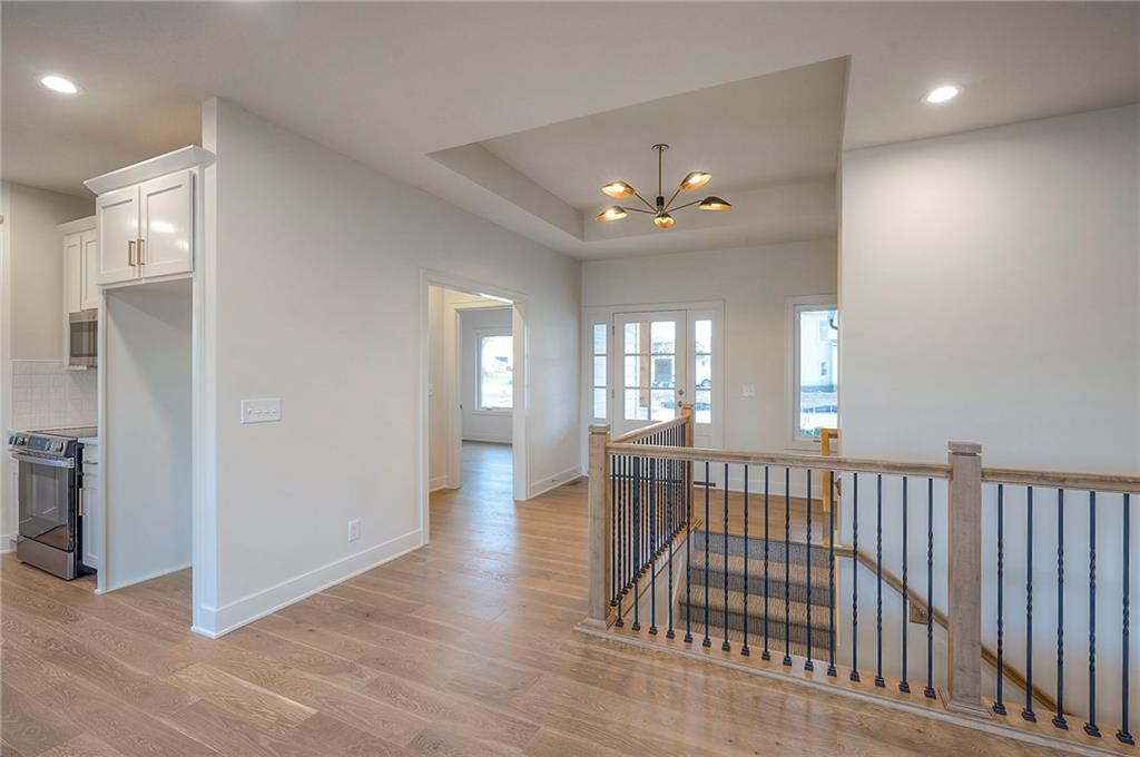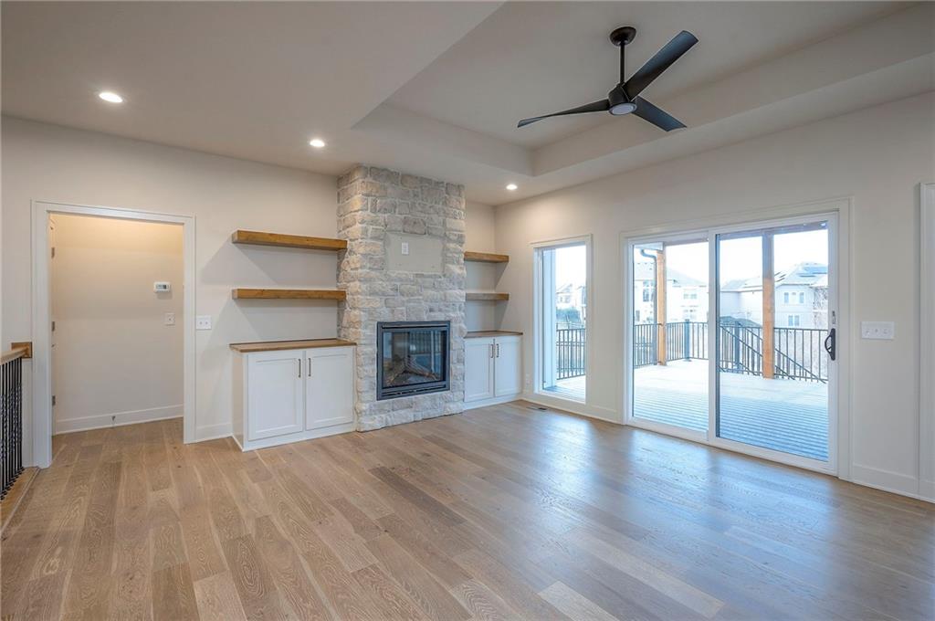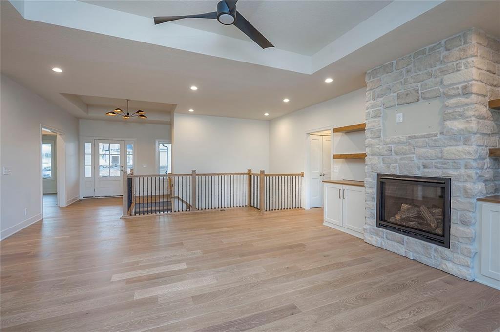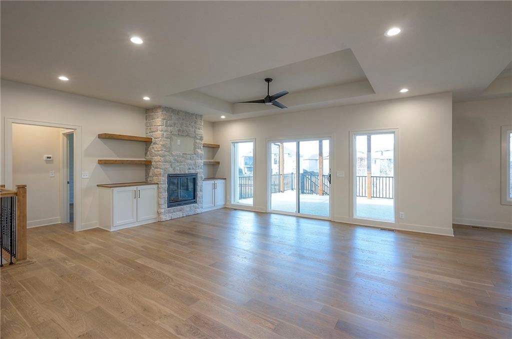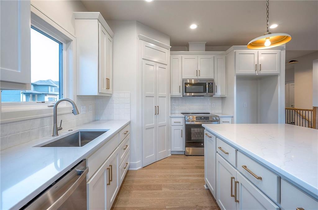 Ready Now! The Addison Reverse Plan by Brian Scott Homes – Lot 99 Boulder Hills | Backing to Trees & Trails |Walk-up/Walk-out Welcome to the Addison, an exceptional reverse 1.5-story home located on coveted Lot 99 in Boulder Hills, offering a rare walk-out/walk-up lot that backs to mature trees and scenic walking trails. This thoughtfully designed 4-bedroom, 3.5 bathroom home is ready now to enjoy your backyard oasis. Discover a spacious, open layout with high-end finishes and custom details inside. The gourmet kitchen is a dream, featuring custom cabinetry, quartz countertops, a large center island, and a walk-in pantry. The adjacent great room showcases a stunning stone fireplace and plenty of space for entertaining. Walk out from the main level to a huge covered deck—perfect for enjoying peaceful, treed views year-round. The front bedroom welcomes natural light through oversized windows, while the primary suite boasts a custom feature wall and direct access to the deck. The spa-like primary bathroom includes dual vanities, a freestanding tub, and a luxurious walk-in shower. You'll love the generous walk-in closet conveniently connected to the laundry room. The oversized garage is a standout feature, measuring an impressive 24.6' x 29.6' with a 6' x 7' bump-out—perfect for your extended truck, workbench, or recreational gear. Downstairs, the walk-out/walk-up lower level offers a large recreation room, two additional spacious bedrooms, and a full bathroom—ideal for guests or family fun. This is the last available home in Boulder Hills backing to the private tree line—don't miss your chance to own in this premier community! Boulder Hills Amenities Include: a beautiful pool with a waterfall, an outdoor kitchen area, walking trails, a playground, a pickleball court, and a community clubhouse. See why Boulder Hills is one of the most desirable neighborhoods around!