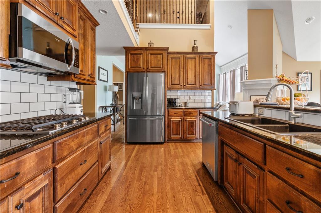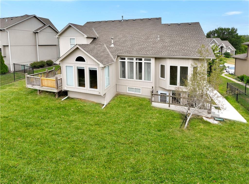 6 bedroom 5 1/2 bath in Copperleaf Subdivision. Great location with easy access to I-35, KCI Airport, and downtown. Lots of shopping and dining just blocks away. This 1.5 story home has so much to offer. The main floor consists of master bedroom and master bath, living room, formal dining, kitchen, breakfast nook, laundry room, and office! The upstairs has three bedrooms, 2 full bathrooms, bonus room above master that would make a great media room or play room and living area. Upstairs also has an amazing balcony that opens up above the main floor. The finished basement would be great for a mother in laws quarters or if you needed the extra living space. The basement supports a second master bedroom and bathroom, the sixth bedroom and the fifth full bathroom. There is also a full kitchen and second laundry room in the basement. The basement has it's own entry from the outside with a new sidewalk that loops back around to the front of house. Several updates within the last few years throughout entire home. Basement just finished this year with modern touches. A must see with room for the whole family!