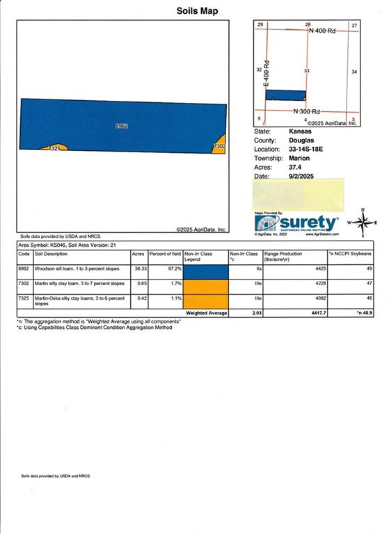 Perfect building site or purchase with additional 20.25 AC MLS 2572342 Taxes TBD Aerial map, created with Surety Pro paid subscription & used with permission from AgriData, Inc.