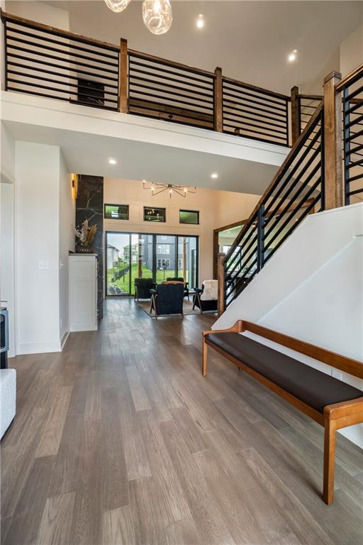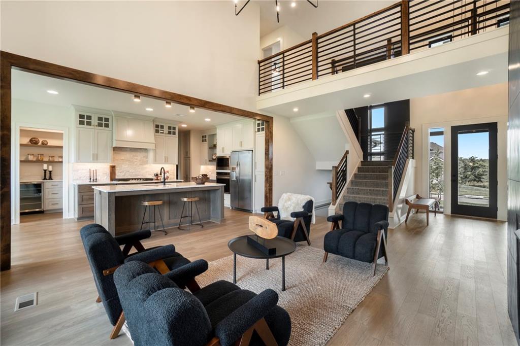 Ask about the Developer/Builder $10,000 INCENTIVE PROMO!!! This large corner lot is located at the back of the subdivision close to the pool and is so peaceful. In a culdesac. This one is a show stopper with an open concept great room that features soaring ceilings w/ gorgeous beams, oversized chandelier, 2-story gas fireplace in the living room, and tons of natural light. The chef's kitchen overlooks the great room which makes this home perfect for entertaining. The kitchen is complete with a large granite island, walk-in pantry with butlers bar, beverage fridge and sink, gas stove, and plenty of cabinet & counter space. Enjoy spring nights on the covered patio as the 8 ft. double doors open to a spacious colored, stamped concrete patio! Master suite has fireplace and double coffered ceilings on the main level with large, stunning master bath with a walk in shower, freestanding tub, double vanity, and walk-in closet with built in dresser with access to the main level laundry room. Upper level has a loft, 3 bedrooms and 2 bathrooms. It also has a closet for a stacking washer/dryer. Lower level is partially finished and has a large rec room, a half bath, and a separate room. It also can have another bedroom and full bath built with lots of storage space. Perks are soft close cabinets and drawers, kitchen fridge and beverage fridge included, garage door openers included. Lots up upgrades. Summit View Farms is located in award winning AAA Rated Schools. Community pool and playground are finished. Sales office is located at 3141 SW Summit View Trl Agents can come to meet you or your buyers any time, any day, by appointment. Office hours are Wed through Sunday 12-5pm at 3141 SW Summit View Trail, across from pool. Open house every weekend 12-5pm if you wanted to come for a look. Must use Builder Contract See supplements. There is a $250 HOA set up fee, $600/yr HOA fee and $168/yr trash fee total $768/yr prorated at closing.