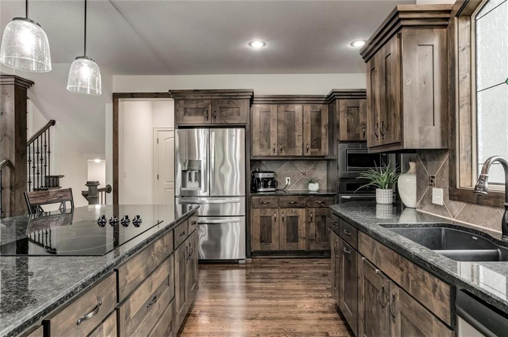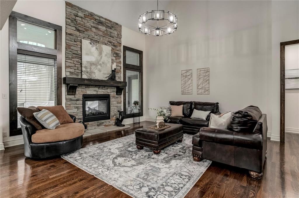 Stunning Don Julian 1.5 Story in a Beautiful Subdivision! This move-in ready home offers space, style, and upgrades—without the wait of new construction. Open floor plan with see-through fireplace to covered deck, large main-floor primary suite with huge closet and connected laundry. Fresh interior paint, new stair carpet, new dishwasher, and a 1-year-old roof! Upstairs features a 2nd primary suite, and 2 more bedrooms. The walkout/walk-up basement boasts a stylish wet bar, 5th bedroom, craft room, exercise room or a non-conforming 6th bedroom and access to a fenced yard with covered porch and patio complete with a fire pit! Enjoy 70 acres of green space with trails connecting to JOCO’s trail system—plus Heritage Park’s golf, lake, dog park & more nearby. This home has the features new builds miss—at a better value! Choose Blue Valley, Spring Hill or Olathe schools and seek a nonresident transfer!