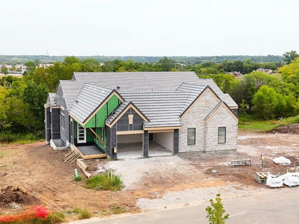 THE BELMONT EXPANDED BY LAMBIE HOMES – AVAILABLE FEBRUARY 2025! This reverse 1.5 story paired villa offers 3,883 sq ft of luxury living on walkout Lot 9/D17 in Regents Park. Set on a desirable walkout lot, this home maximizes indoor and outdoor living with a covered deck off the main level and a finished lower level that opens to a patio. It’s an entertainer’s dream—plenty of natural light downstairs, seamless flow to outdoor spaces, and room to host gatherings year-round. The Belmont Expanded builds on one of Lambie’s most popular plans with additional square footage and a spa-inspired primary suite featuring a free-standing soaking tub and zero-entry shower. The open main level showcases tall ceilings, a chef’s kitchen with custom cabinetry, oversized island, walk-in pantry, and spacious great room. With 4 bedrooms and 3 baths, the plan also includes a versatile main-level guest suite or office. The walkout lower level adds a large family room, game area, wet bar, and two additional bedrooms. Premium details include wide-plank hardwoods, quartz countertops, custom trim, and designer finishes throughout. Outside, Regents Park’s signature elevated look includes stone and stucco exteriors, black concrete tile roofs, and professionally designed landscaping. As one of Leawood’s last remaining luxury villa and single-family home communities, Regents Park features private amenities such as a pool and pavilion, pickleball courts, dog park, and walking trail. You’re just moments from vibrant shopping and dining along 135th Street. Don’t miss this rare opportunity—stop by our model home today to learn more about this home or additional inventory and building sites for both paired villas and single-family homes! Progress photos and images of the completed model are shown.