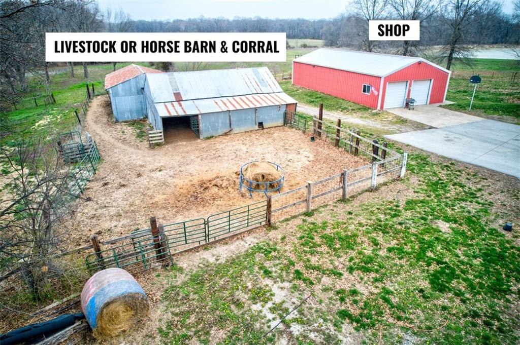 This recreational property features a pond, two miles of trails, woods, streams, and more wildlife than you can imagine. It also generates income if you grow crops or raise livestock. Most of all, it’s a home. Look out the windows, and you’ll fall in love with the views. Nearly gutted to the studs, the Sellers have spent the last eight years updating and decorating so you can enjoy horses and livestock, hunting deer or wild turkey, or exploring the mile of trails carved through the trees. The plumbing fixtures, including shower heads, faucets, sinks, and toilets, are newer. The kitchen and baths feature newer cabinets, sinks, and granite or marble countertops. Stainless Steel Appliances are under two years old. ALL light fixtures and most switches and plugs are newer. The oversized mudroom is large enough for a loveseat, chair, and an old-fashioned tub sink. The great room boasts vaulted ceilings and a stunning floor-to-ceiling brick fireplace. The primary bath has beautiful tile floors, a newer shower, and a whirlpool tub. The spacious basement rec room is perfect for pool, game nights, and drinks at the wet bar. The basement also features a non-conforming bedroom and full bath. The massive patio easily accommodates 75+ guests and is stubbed for an outdoor kitchen. The livestock barn has an automatic watering area. A breathtaking quarter-mile trail, LOVERS LANE, feels like a movie set. The property is fenced and cross-fenced for livestock and horses. The septic, furnace, A/C, and water heater are 1–3 years old. The 1.87-acre pond is 27' deep and stocked with bass, crappie, bluegill, and catfish.