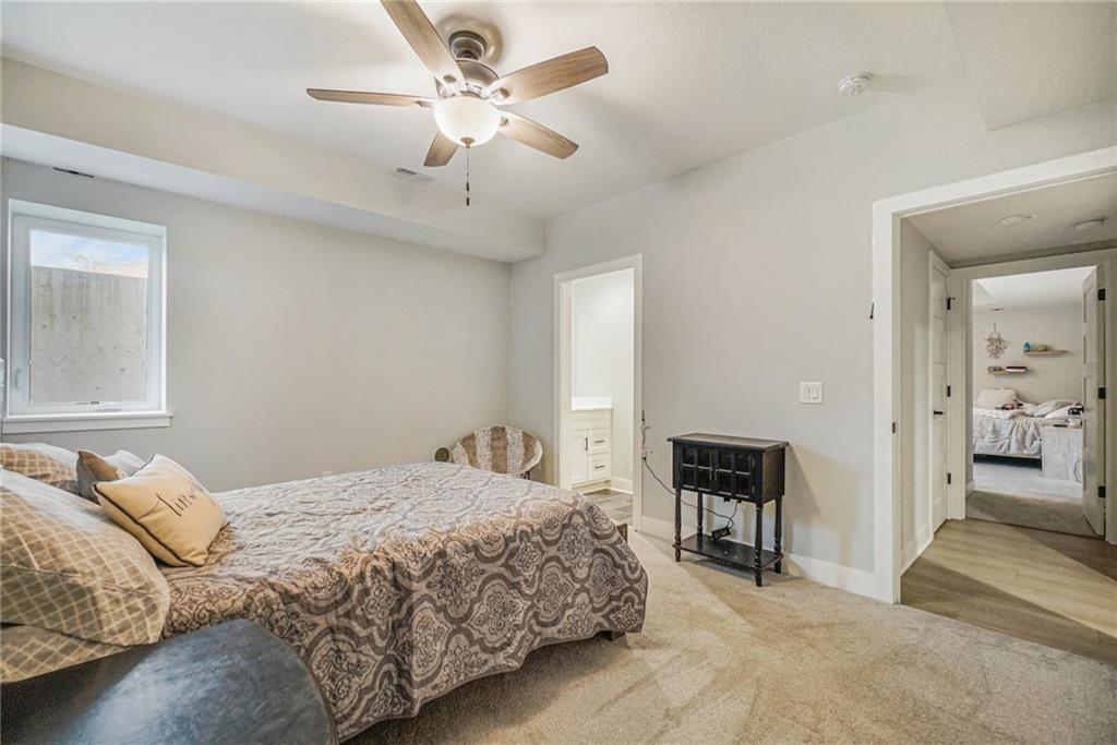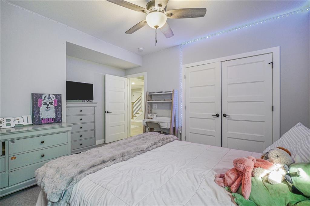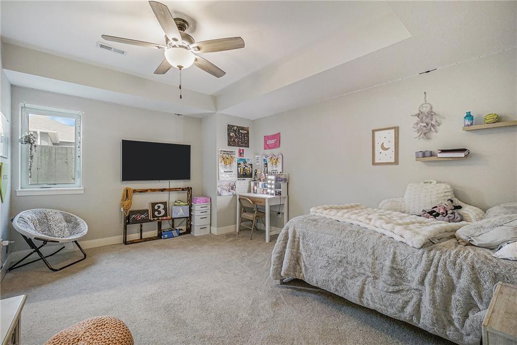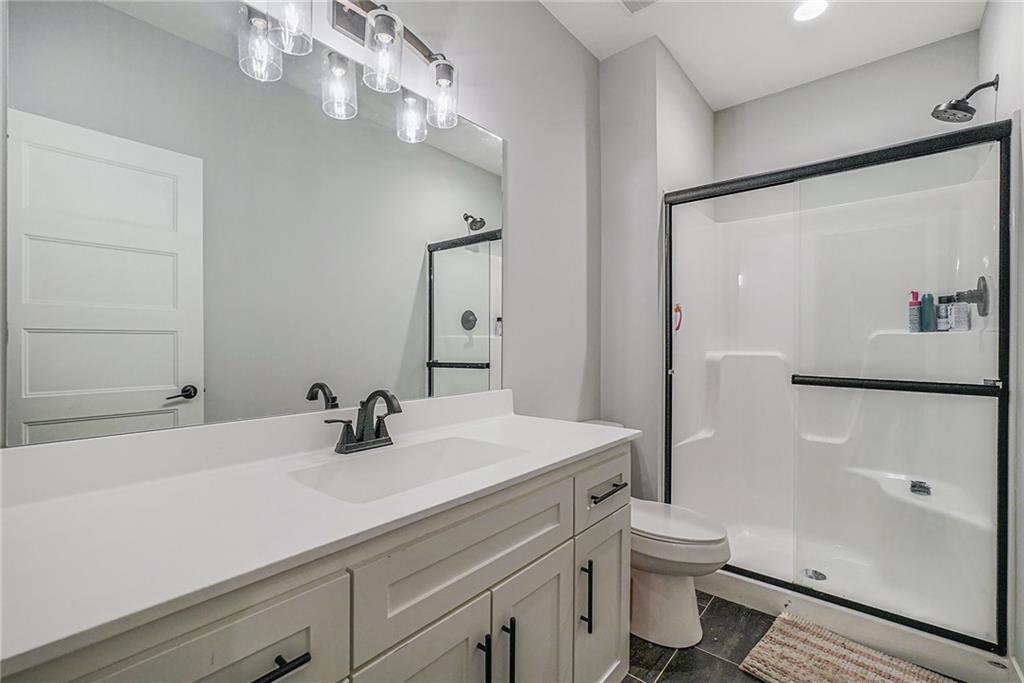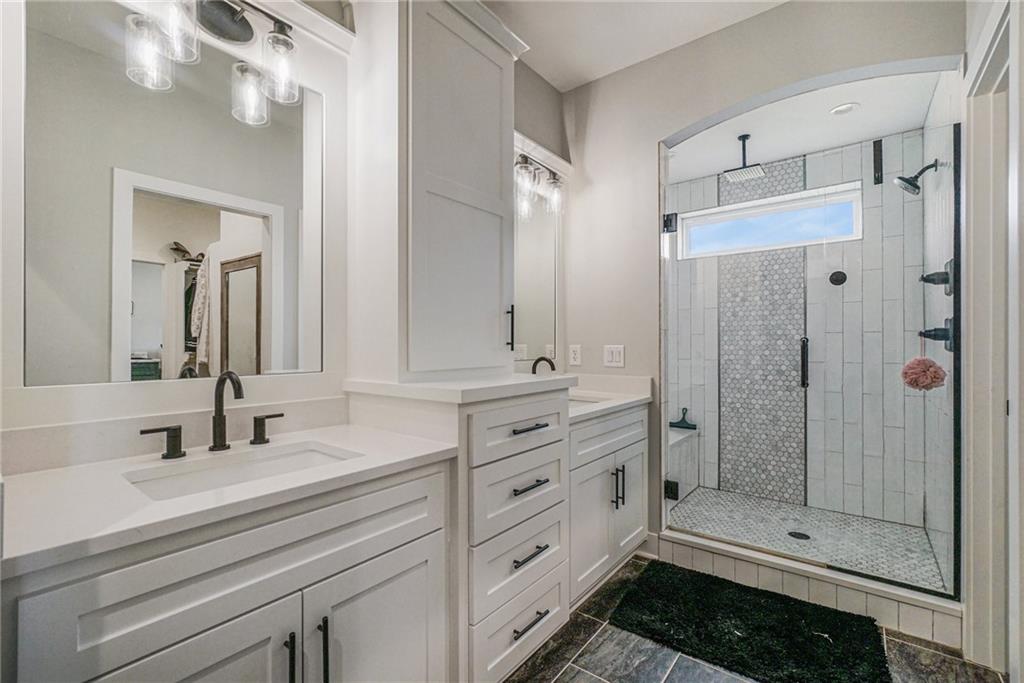 Beautiful 5-bedroom, 4.5-bath reverse 1.5-story home in the popular Shadow Glen of Peculiar. Sitting on 1 acre & backing to open farmland, this tastefully modern home, framed in 2x6 construction, features a fenced portion perfect for kids, pets, or a pool. The oversized 3-car garage with high ceilings includes a tandem bay for storage, a workshop, or even a golf simulator, plus a 40+ ft pad with a 50-amp connection for an RV or trailer. Inside, light, modern tones leading to a spacious open living, kitchen, & dining area. Living room showcases a stacked stone fireplace with custom shelving & cabinets. Chef’s kitchen boasts a grand island, custom cabinetry, gas cooktop, double ovens, farm sink, & a large pantry with beverage fridge. Step outside to a covered deck with a stone fireplace & an expanded patio that connects to the garage & driveway. Main-level primary suite offers a spa-like bath with double vanity, tiled walk-in shower, & laundry access through the walk-in closet. Laundry room equipped with sink, cabinets & counters. A secondary bedroom with private ensuite bath & a convenient half bath complete the main level. Downstairs, enjoy a versatile flex space with a bar and space for a fridge, opening to a large media/theater room. Three generously sized bedrooms with walk-in closets & two full baths complete the lower level. Shadow Glen continues to be a perfect place to escape the city or raise a family; providing a great blend of residents. Large lots allow for privacy but still holds the feeling of community. Quick access to I49/71HWY & desirable Ray-Pec Schools.