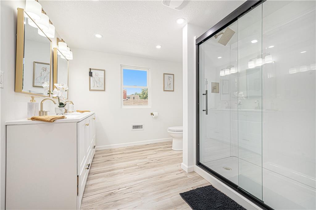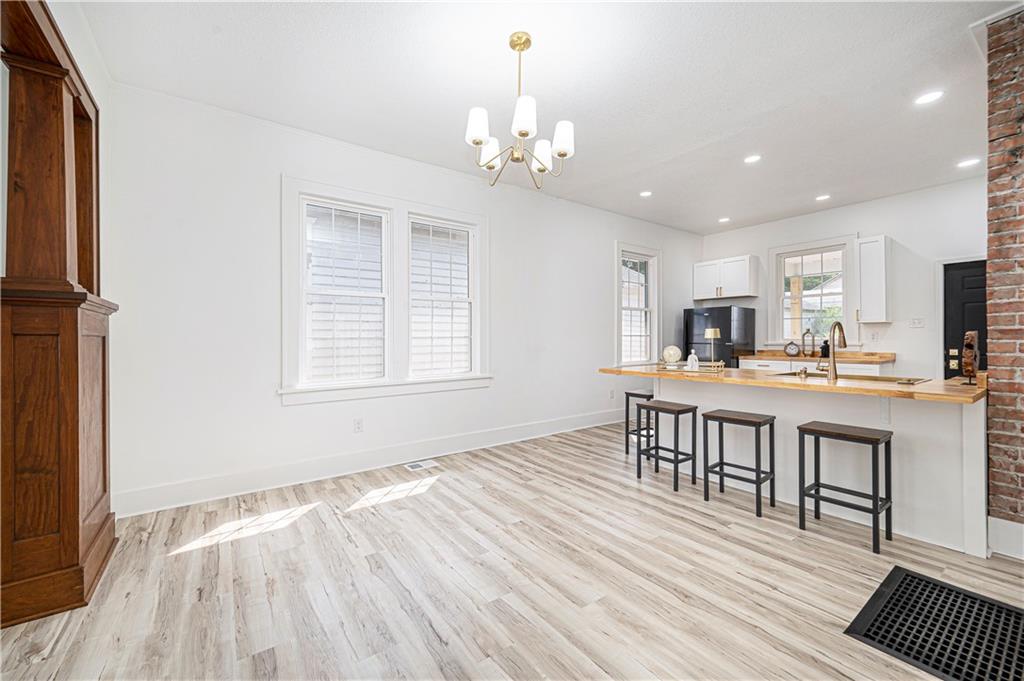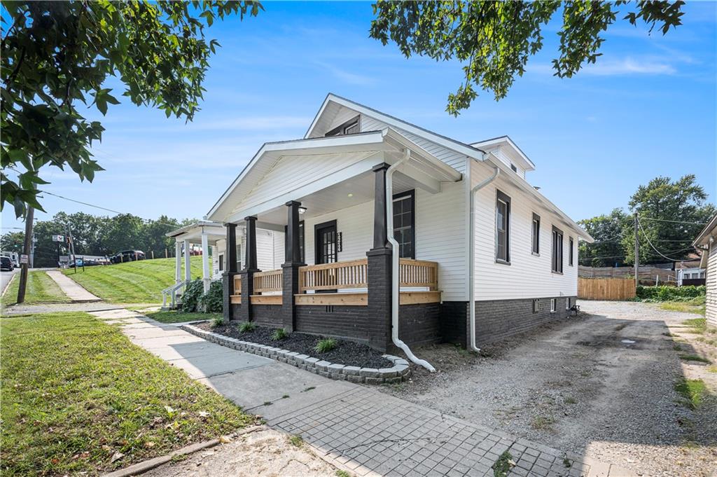 Price improvement! Charming 1931 Bungalow, Fully Rebuilt for Today’s Lifestyle! Step into timeless charm with modern convenience in this beautifully rebuilt 3-bedroom, 2-bathroom bungalow. Originally built in 1931, this home has been thoughtfully renovated from top to bottom with today’s buyer in mind. The exterior shines with a new roof, siding, windows, and front porch, highlighted by four stately metal-wrapped columns and the refinished original front door. Inside, you’ll find fresh paint, luxury vinyl plank flooring (scratch- and water-resistant), and restored original trim and built-in woodwork that showcase the home’s character. The open-concept main level flows seamlessly from the living room to the dining area and into the kitchen. Two spacious bedrooms with ceiling fans and high ceilings are on the main floor, along with a full bathroom featuring a vanity with gold accents and a shower/tub combo. The kitchen is a true showpiece with butcher block countertops, new black appliances, crisp white cabinetry, brushed gold hardware, and a bartop with seating for four. An exposed brick accent wall adds a touch of original character. Step out the back door to a cozy porch, privacy-fenced yard, new gravel, and parking for up to four vehicles. Upstairs, discover a spacious primary suite with a walk-in closet and en-suite bathroom complete with double vanities and a shower/tub combo. The refinished basement offers additional living space, perfect for a media room, playroom, or home office, along with laundry hookups. Additional updates include a new HVAC system, hot water heater, and all-new plumbing, giving you peace of mind for years to come. If you’ve been searching for a home that blends historic charm with modern upgrades, this is the one you won’t want to miss!