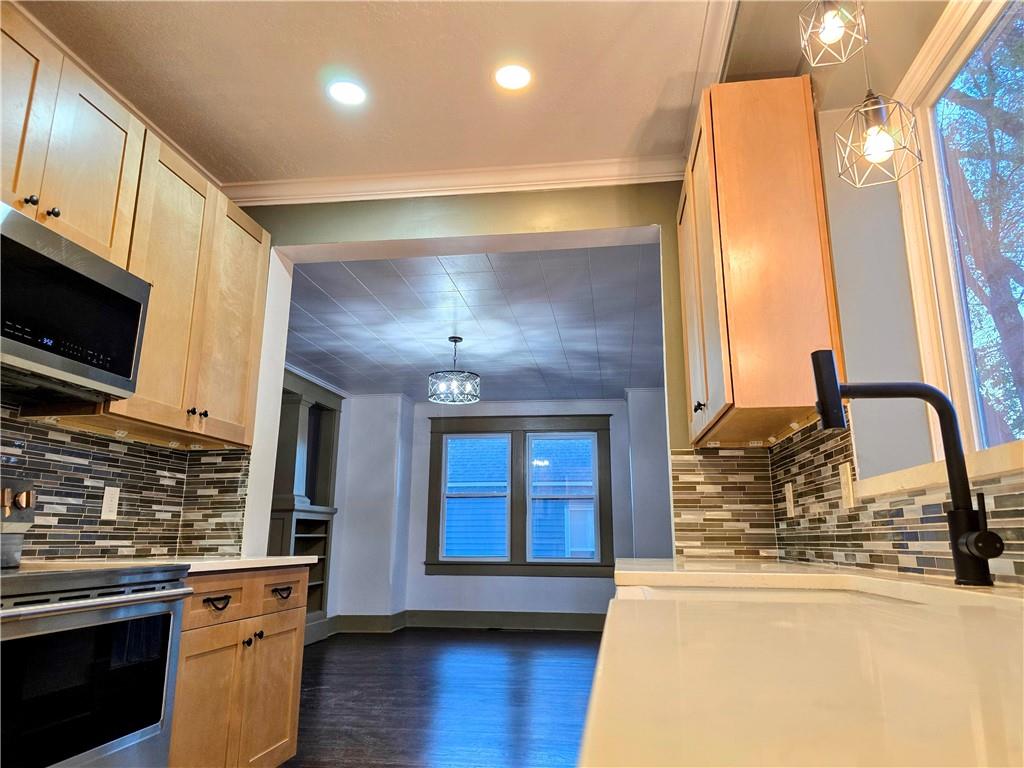 Step inside and enjoy the spacious rooms and refinished hardwood floors in this newly updated and remolded 2.5 story home! New windows, new kitchen appliances, full basement semi finished with bath and family room. Laundry area is conveniently located on the 2nd level with the 3 bedrooms! Enjoy 2.5 baths, spectacular staircase, detached garage, and spacious deck overlooking fenced back yard! Third floor bonus area (not included it square footage amount) has so many possibilities for additional bedrooms, office, home gym, you decide! Don't let this home sell before you get a chance to look!