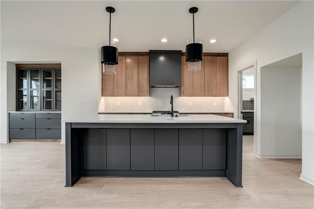 Approximately 60 days from completion, this reverse 1.5-story home offers a modern exterior, a smart main-level layout, and spacious lower-level living. The main floor features the primary suite plus a second bedroom that can serve as an office or flex space, providing versatility for today’s lifestyle needs. The great room connects seamlessly to the kitchen and dining area, all highlighted by natural light throughout. A covered deck sits just off the dining area, ideal for outdoor dining or quiet relaxation. The primary suite offers a peaceful retreat with a spacious layout and access to a beautifully appointed bathroom. The lower level extends the living area with a large recreational room plus three additional bedrooms, offering privacy for guests or added functional space. Located in Stonebridge Park, residents enjoy access to four zero-entry pools, two clubhouses with fitness equipment, sport courts, playgrounds, and walking trails. Nearby amenities include Heritage Park (~0.3 mi) with lake access, dog park, athletic fields, disc golf course, and an 18-hole golf course. Convenient to Prairie Creek Elementary (~0.6 mi), Woodland Spring Middle (~1.0 mi), and Spring Hill High (~5.5 mi). Everyday essentials are close by with local coffee shops (~1–1.2 mi), Natural Grocers (~4.2 mi), and Price Chopper (~4.5 mi). Taxes, square footage, and room dimensions are estimated – Buyer or Buyer Agent to verify.