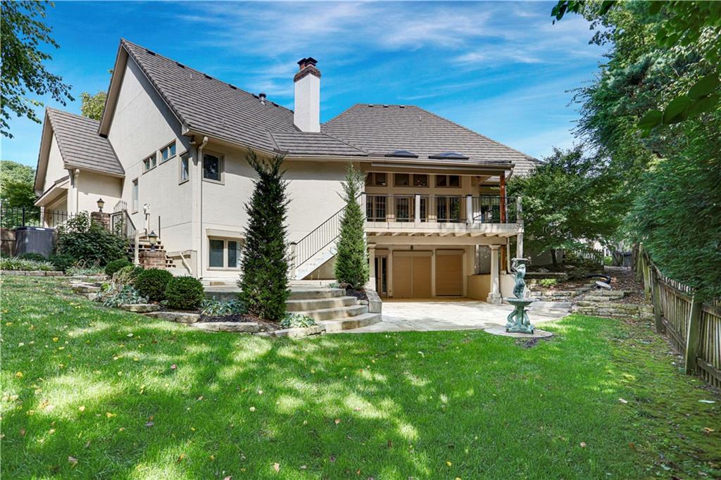 Welcome to the beautiful Patrician Woods! This large reverse 1.5 story home is located on a corner lot with a welcoming half circle drive has over 7000 sq ft of living space - that's only $118/sq. ft. Main floor living at it's best! The main level features a huge formal living room and dining room with wet bar and fireplace. The master bedroom with attached sitting room/office, fabulous updated master bath with heated floors, and 2 other large bedrooms and full bath also located on main level. The Great Room features tall ceilings, fireplace and walk out to covered veranda. The butler's pantry off the Great Room includes a wine fridge. The kitchen includes granite counters, all stainless steel appliances and hearth room. Laundry room with sink also located on main level. The second floor includes 2 big bedrooms and a full bath. The huge basement offers many opportunities with two entries for walk out. One side has a huge wet bar, with recreation room/multi purpose room, full bathroom, lots or storage, office area and cedar closet with a walk out to a beautiful, large entertaining patio. The basement also features an attaches nanny quarters/nurses quarters/MIL quarters, with 1-2 non conforming bedrooms, fireplace, full bath, and a full kitchen just awaiting your finishing touches. These separate living quarters has its own entrance both inside the home and outside this oversized home. The backyard is fully fenced in. Newer high end, stone steel coated roof. Patrician Woods is a popular community and close to all the best of Leawood for restaurants, shopping and entertainment, don't wait to view! BACK ON MARKET - NO FAULT TO SELLER