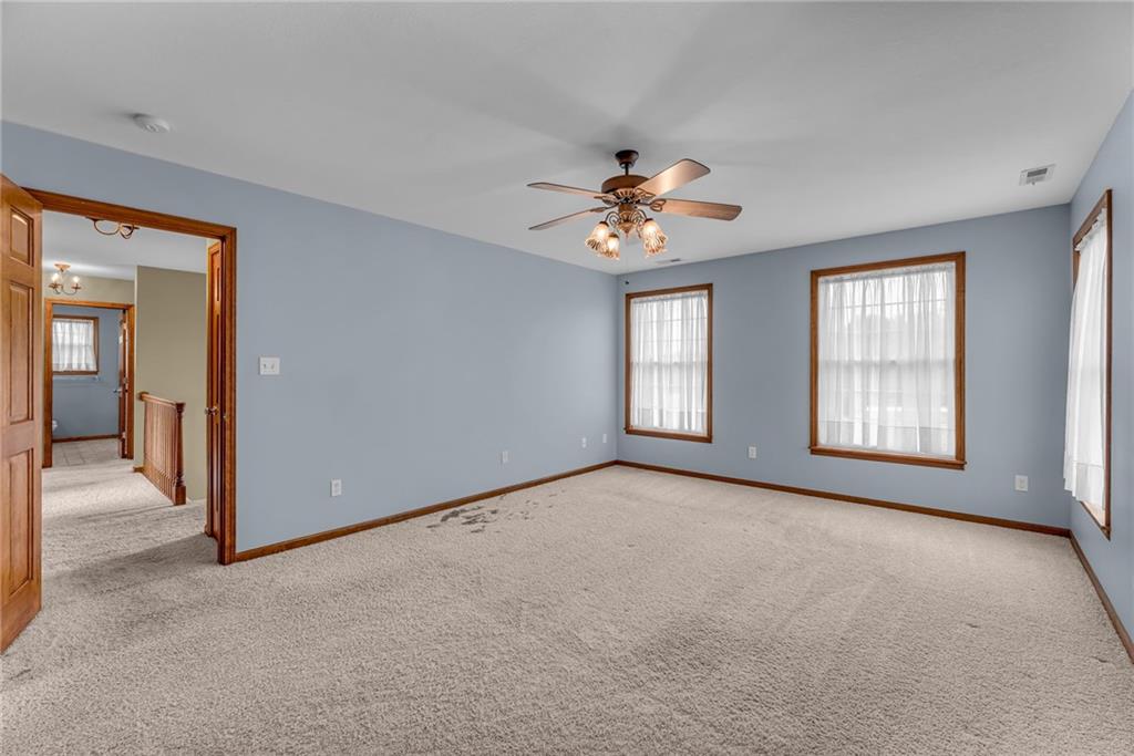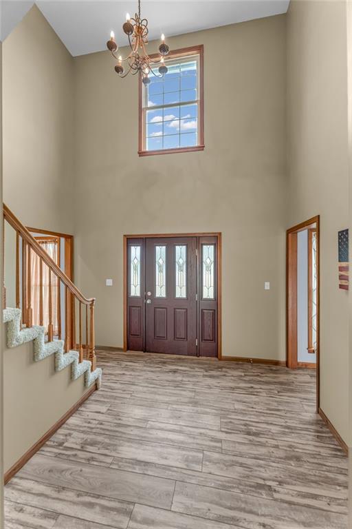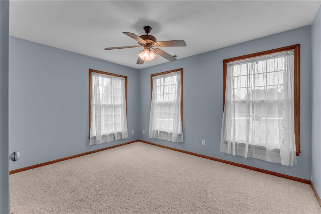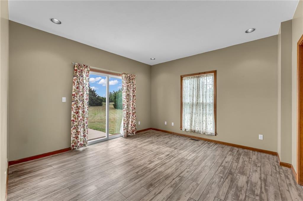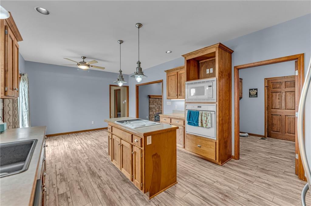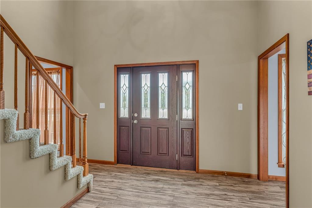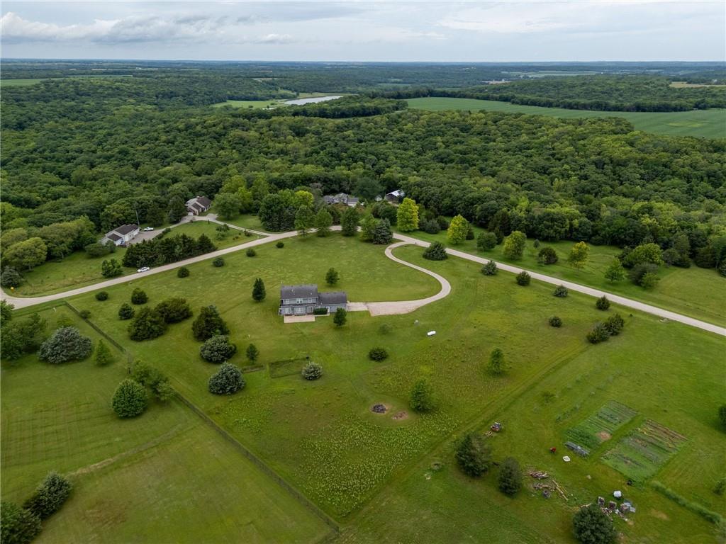 Set on five open acres just minutes from Highway 59, this two-story home offers space, flexibility, and a peaceful setting with easy access to town. Built in 2001, the home features a classic, New England inspired roofline that adds character while keeping the layout practical. A two-story entry with vaulted ceilings opens to formal living and dining areas that easily adapt to your needs. A main floor study provides a quiet space for work, reading, or hobbies. The family room centers around a stone fireplace and flows into the kitchen, which features custom wood cabinetry, an island range, pantry, breakfast area, and sliding doors to the patio. Main floor laundry is conveniently located near the garage. Upstairs, the primary suite includes an ensuite bath and walk-in closet, while three additional bedrooms share a full bath. The unfinished basement offers future potential with egress windows, plumbing for a bathroom, and a water-powered backup sump pump. Outside, the five-acre setting provides plenty of room to spread out, garden, or enjoy the outdoors. Enjoy the freedom to live your way, with space for entertaining, hobbies, and everyday life.