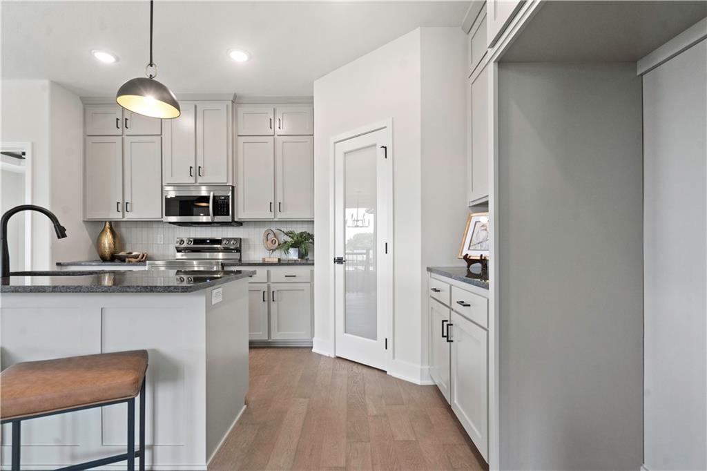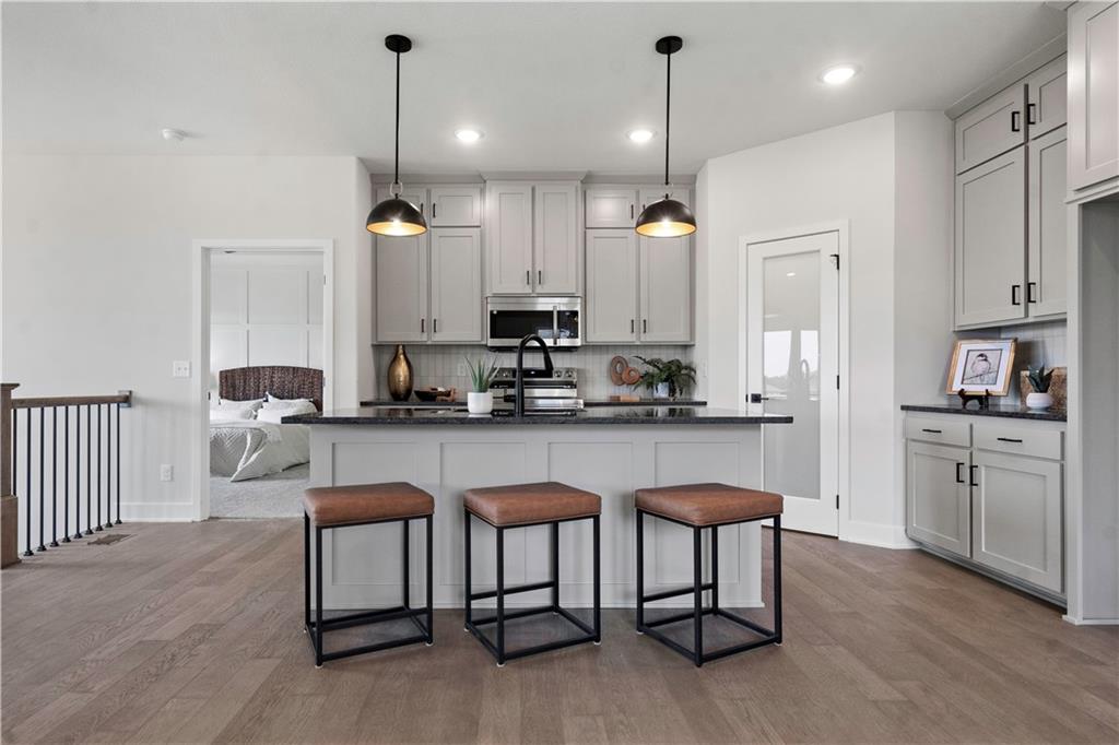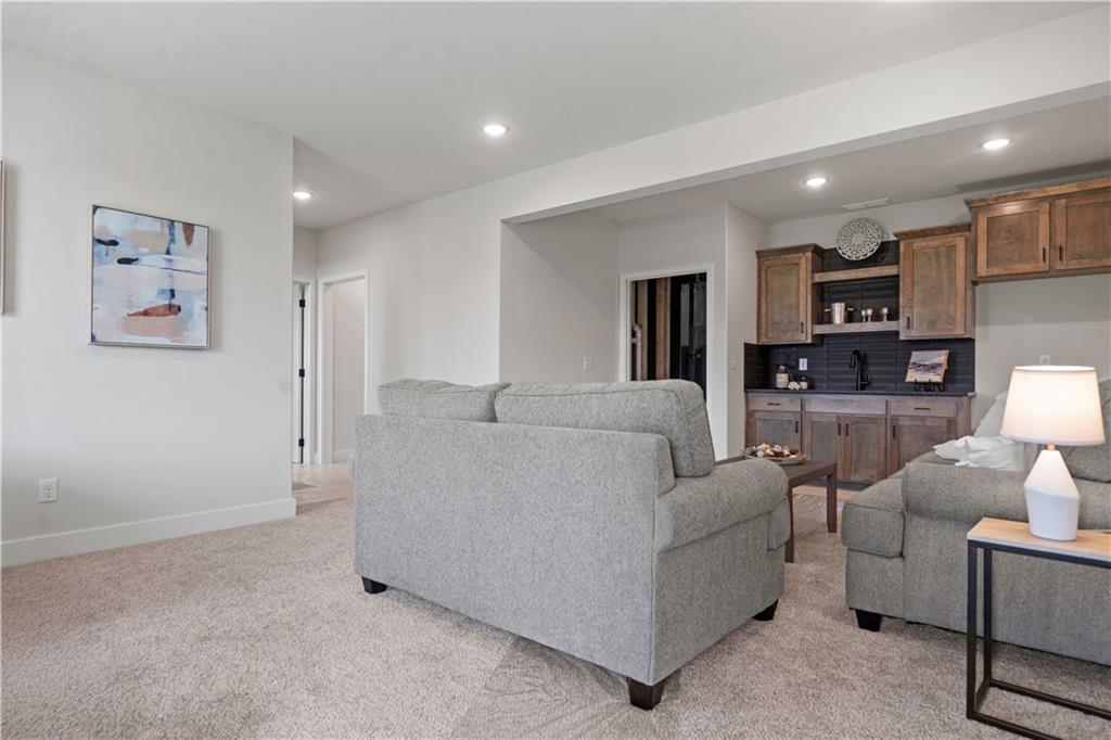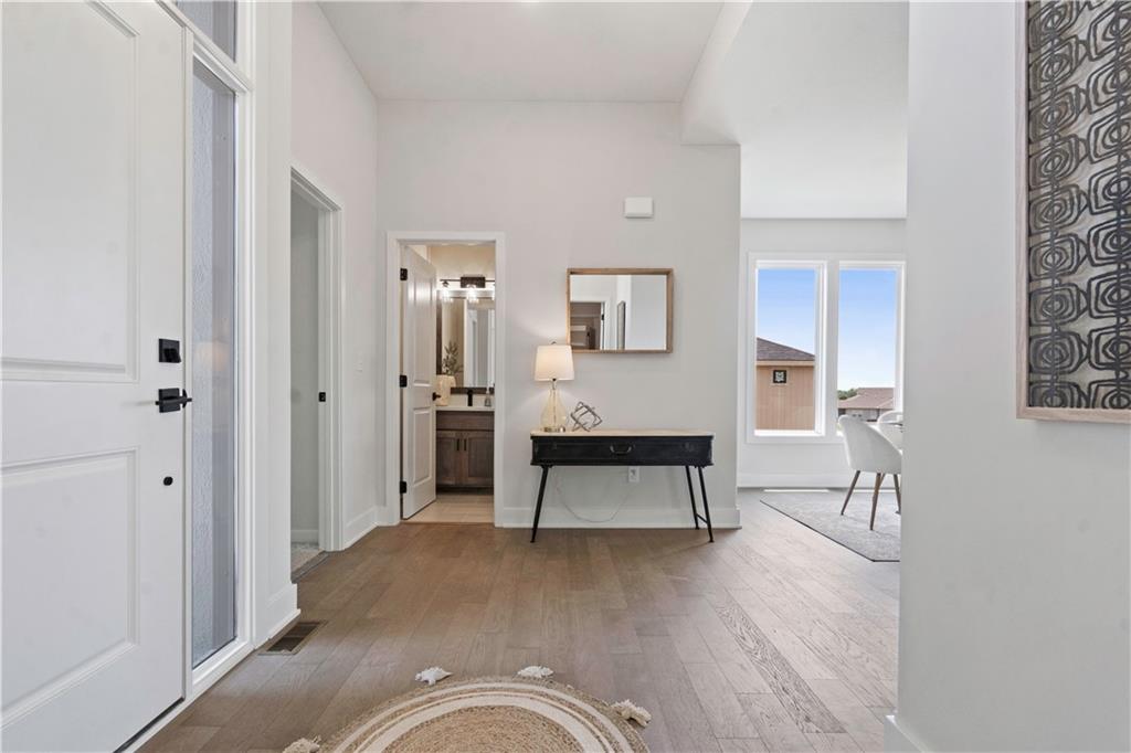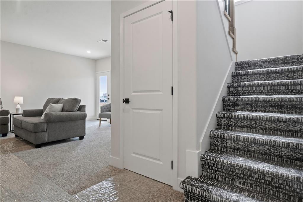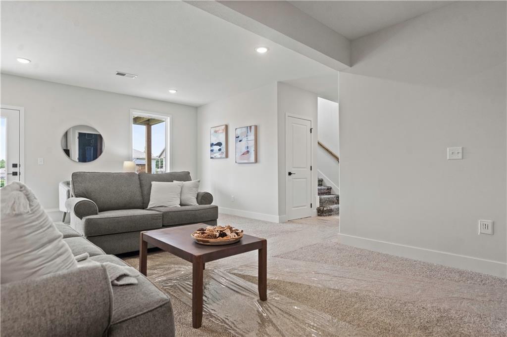 Introducing the stunning Meadowcroft II Reverse by DRHI ! This thoughtfully designed home features a bright and inviting Great Room with an elegant electric fireplace framed in tile. Oversized double doors flood the open-concept main living area with natural light, leading to a covered 16x10 deck overlooking a serene pond. The chef’s kitchen boasts custom cabinetry, a stylish tile backsplash, solid-surface countertops, and an electric cooktop, all perfectly complemented by gleaming hardwoods flowing through the Great Room, kitchen, dining area, mudroom, and pantry. Downstairs, enjoy a finished walkout basement that opens to a covered patio, perfect for relaxing or entertaining. Retreat to the luxurious primary suite featuring a walk-in tiled shower and beautiful tile finishes. Nestled in the highly sought-after Foxberry Estates, residents enjoy resort-style amenities including a pool, clubhouse, scenic trails, and playgrounds. Home is under construction and final pricing is subject to change.