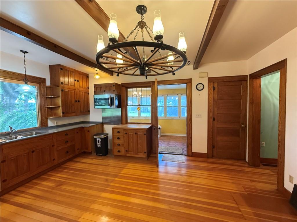 Step into timeless charm with this beautifully maintained and thoughtfully updated 100-year-old bungalow nestled on 2.7 picturesque acres. This two-story home blends historic character with modern conveniences, offering 3 spacious bedrooms and 2 full bathrooms, including a main-level primary suite for added accessibility. Inside you will find hardwood floors throughout, custom cabinetry, and a cozy mudroom/ sunroom. Additional features include updated HVAC system and water heater. A whole home propane generator for peace of mind and durable metal roof. A 2-car attached garage and stamped concrete patio for entertaining and relaxing. Outside you will enjoy the beauty of established flower beds. The property boasts a large metal shed, a classic wood barn, a chicken coop and an old fashioned out house. Whether you're looking for a peaceful county lifestyle, a small hobby farm or simply room to spread out this unique property has it all.