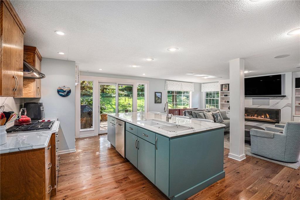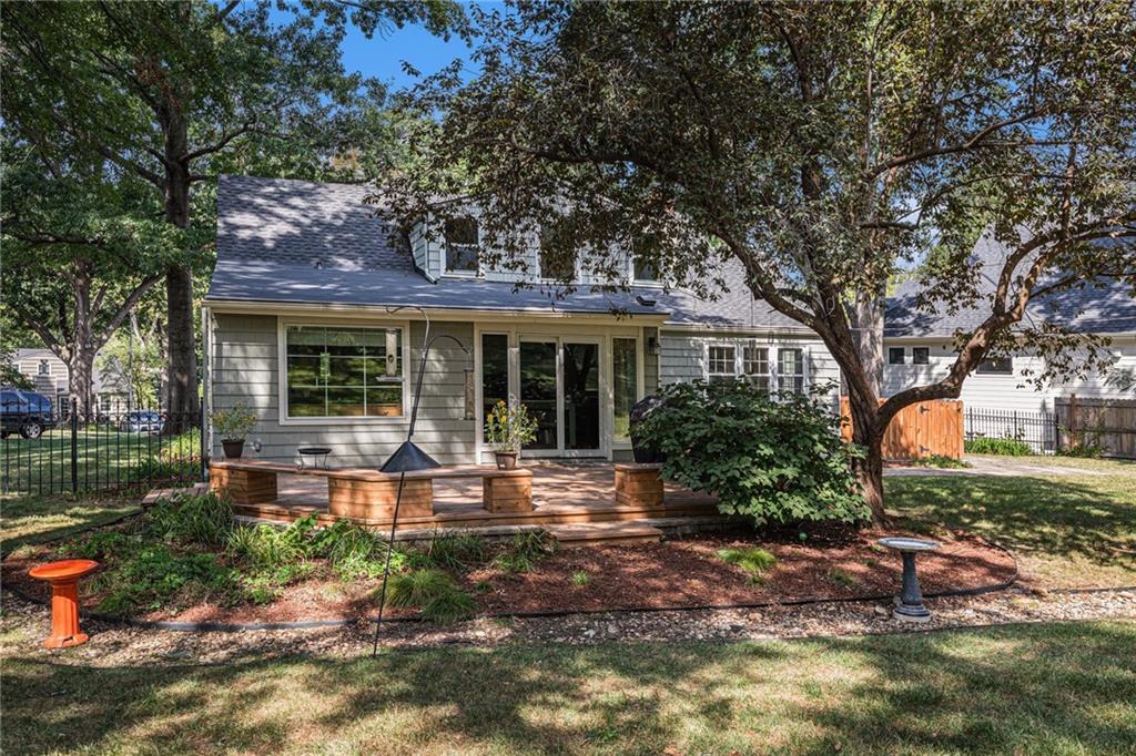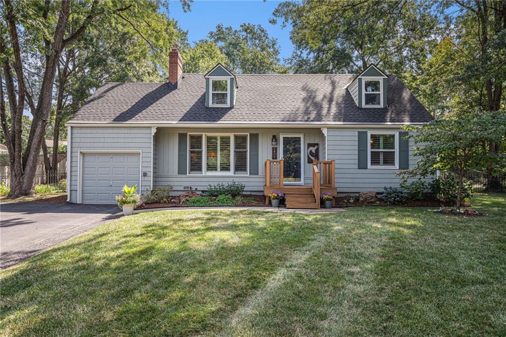 Welcome to your future Prairie Village home—move right in and enjoy all this vibrant community has to offer. Just minutes from the Shops of Prairie Village and Shawnee Mission East High School, this beautifully updated Cape Cod sits on nearly a half-acre treed lot in a peaceful cul-de-sac. Offering over 1,900 finished sq. ft. above ground plus an unfinished basement, it blends timeless charm with modern comfort. The formal living room features hardwood floors, crown molding, and a cozy fireplace that opens to a formal dining room and bright sunroom—ideal for an office, gym, or playroom. Remodeled kitchen and baths showcase quality finishes and thoughtful design, while the open great room centers around a striking quartz-faced gas fireplace, custom built-ins, and an integrated media system. The kitchen impresses with quartz countertops and backsplash, premium appliances, custom cabinetry, and a spacious island for gathering. A main-level bedroom and spa-inspired bath offer flexible living options, while upstairs, the primary bedroom includes hardwood floors and a walk-in closet. The third bedroom features a walk-in closet, built-in dresser, and side room for added versatility. The remodeled upstairs bath echoes the main level’s modern style with a walk-in tile shower and rain head. Recent updates bring peace of mind—newer HVAC, roof, gutter guards, whole-house water filtration, sump pump with battery backup, washer/dryer, interior paint, foundation work with a transferable lifetime warranty, and more! Outdoors, entertain or unwind on the large deck with built-in seating. Combining comfort, craftsmanship, and an exceptional location, this home makes everyday living easy and inviting.