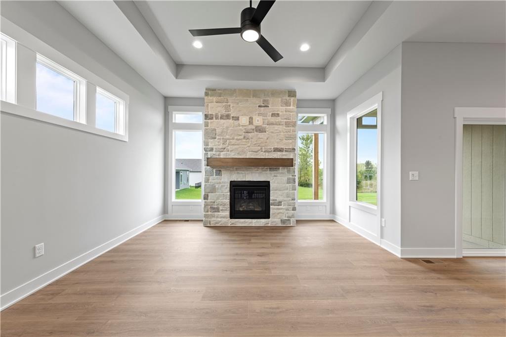 $10k Builder Incentive for closing costs or rate buy-down assistance if you close before 12/31/25! NEW Reverse 1.5 Floorplan by Award-Winning Inspired Homes!! Welcome to The Bristol, a beautifully designed Reverse 1.5 Story home by local award-winning builder Inspired Homes in highly desirable Lee’s Summit. Move in before the holidays for all of your gatherings and celebrations! This 4 bed, 3 bath new construction offers the perfect blend of luxury, functionality, and value. Bright, open main level features a stunning staircase with accent wall that creates stylish separation between living spaces. Enjoy natural light streaming through plentiful windows, highlighting the spacious great room and designer kitchen. Generous primary suite includes a spa-like bath with soaker tub, dual vanities, and walk-in closet. The finished lower level boasts a large rec room with wet bar—ideal for entertaining—plus two additional bedrooms and a tremendous amount of unfinished storage. Affordable luxury with quality construction, energy efficiency, and Inspired Homes' signature attention to detail. Located near top-rated schools, shopping, dining, and highway access. Don’t miss your chance to own this beautiful new home in one of Lee’s Summit’s most sought-after communities! Kensington Farms offers a sparkling community pool, playground, greenspace, close proximity to Downtown Lee's Summit. Notably, shopping destinations and restaurants are just minutes away, providing homeowners with the opportunity to enjoy the charm of a countryside atmosphere while benefiting from the practicality of urban living. ***BUY WITH PEACE OF MIND, the convenience of new construction backed by a 2-10 Home Warranty, offering 10 year structural, 2 year mechanical, 1 year workmanship
