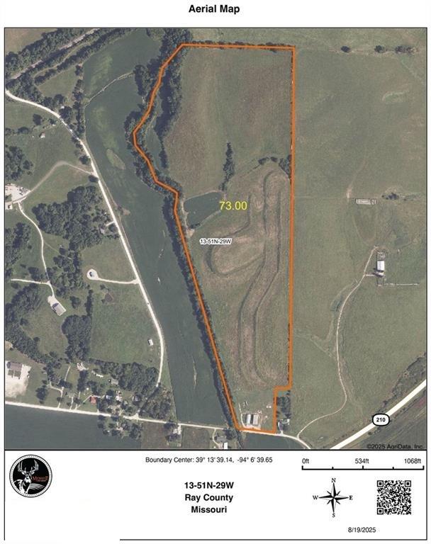 Introducing this pristine 73 acre farm containing a balance of CRP, grassland and cropland that lays along Keeney Creek in Orrick, MO. Pulling into the property and past the building, the property opens up to the gently rolling CRP land and creek bottom crop fields with the gently rolling hay ground tucked well off the road on the northern boundary. Almost this entire farm is not visible from the road, it is loaded in wildlife sign and would make a beautiful build site situated up on a hillside overlooking the creek bottom. The farm consists of 25.11 acres of CRP, 27.94 acres of grassland currently used for hay, 4.5 acres of cropland, and the remaining 15.5+/- acres in timber and water inside Keeney Creek. The CRP contract rate of $212.66 per acre, paying $5,340 annually and expiring in September of 2031. The 4.5 acres of cropland is planted in beans in 2025 and contains 100% class II Nodaway Silt Loam soils with an NCCPI of 80. The grassland is extremely well maintained and has been used as hay ground. This grassland would be eligible for cropland for additional income or a prime build site tucked well off the road. Kenney Creek laces the entire west boundary and the survey for the farm is to the center of the creek giving the owner access to the creek. Other notable features include the 40x80 Quonset building with concrete floor throughout and full size door opening the full 40 ft width. The Quonset style building is fully steel, resistant to fire, controls pests, and extremely durable in storms and high wind. There is also a 40x80 3-sided pole barn equipment shed that sits near 16ft tall to store large agricultural equipment, also an ideal size for a camper or RV. Location of this property is ideal located just east of Kansas City and less than a ¼ mile north of Hwy 210 making it quick and convenient access into the city for work or errands.