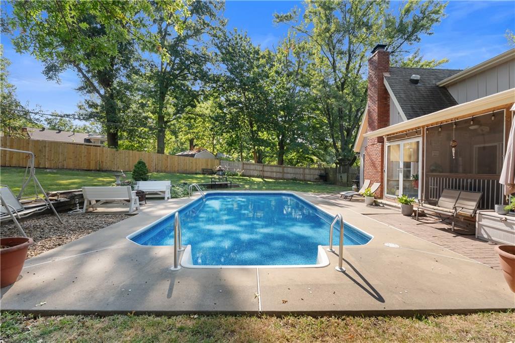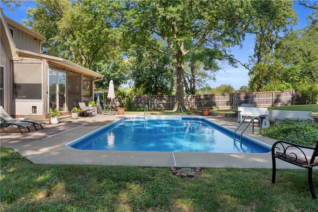 This stunning home truly has it all! The main level primary suite offers comfort and convenience, with direct access to your private backyard oasis featuring a built-in swimming pool and fully fenced yard. Enjoy outdoor living at its best on the screened in porch just off the updated kitchen, complete with quartz countertops, stainless steel appliances, gas stove and sleek stainless range hood. From the pool area, step into a mudroom with a half bath and laundry room- perfect for entertaining and keeping the house tidy after a swim. The main level features a beautiful brick fireplace that makes for a gorgeous focal point with stunning hardwood floors in the great room, spacious office and formal dining room. Upstairs you will find three oversized bedrooms with brand new carpet, an updated full bath, and a versatile loft perfect for a play area or reading nook with built in bookshelves. The finished basement includes a large recreation room with fireplace and a wet bar, pool table area, sewing or craft space and an additional bath. Nestled in a quiet cul-de-sac, with a circle drive this home offers easy access to a nearby park with tennis and basketball courts and is within walking distance to Southwood Elementary School. This home blends luxury, function, and location, everything you have been looking for!