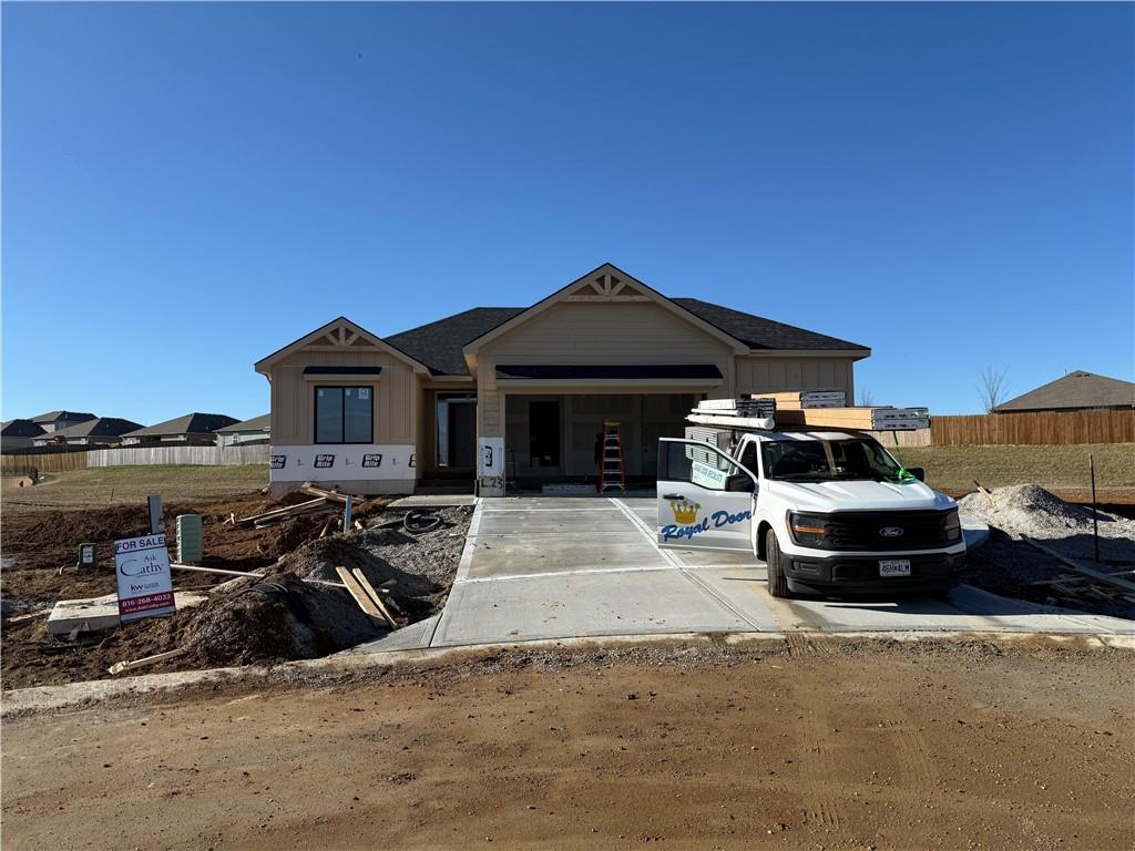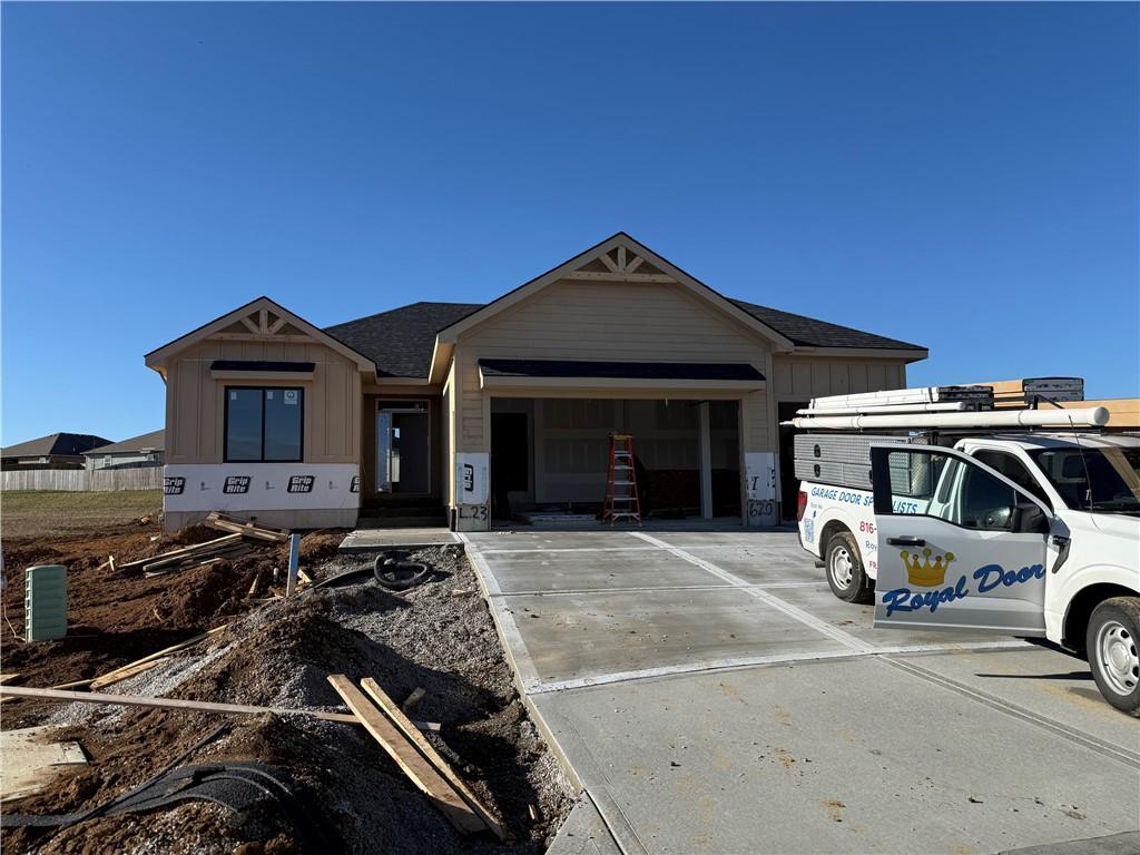 Now Under Construction – The Dexter Reverse 1.5 Story by DRHI! This thoughtfully designed home features a spacious Great Room with soaring 10-foot ceilings and a cozy fireplace, creating the perfect gathering space. The open floor plan showcases a chef’s kitchen with a large center island, huge pantry, and a sunny breakfast area with access to the rear covered patio—ideal for outdoor dining. The luxurious primary suite offers abundant natural light, a spa-inspired bath with dual sinks and a walk-in shower, plus a massive walk-in closet with built-in shelving that connects directly to the main-level laundry room for convenience. A second bedroom and full bath with a shower/tub combo complete the main floor. The finished lower level is designed for entertaining, featuring a large rec room, two additional bedrooms, and a full bath with double sinks. Located in Hoot Owl Acres, this home is just minutes from shopping and dining along South 7 Highway and Adams Dairy Parkway. Enjoy a quiet South Blue Springs location with quick access to 7 Highway and I-70 for easy commuting. Zoned for award-winning Blue Springs Schools, with Blue Springs South High School nearby. Currently under construction; final pricing subject to change.