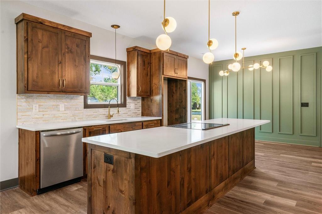 This brand new 3-bedroom, 2-bath home offers one level living and features an open concept floorplan for today's lifestyle. Luxury vinyl plank flooring throughout. Energy efficient led lighting with designer fixtures with brass accents. Kitchen features oversized island with brass faucet, quartz countertops and custom cabinetry. Primary suite off kitchen with access to laundry. Primary bath offers walk in shower. Two nice sized secondary bedrooms Large side entry garage. Patio for relaxing or entertaining. Custom front columns add to the curb appeal of this attractive functional home,