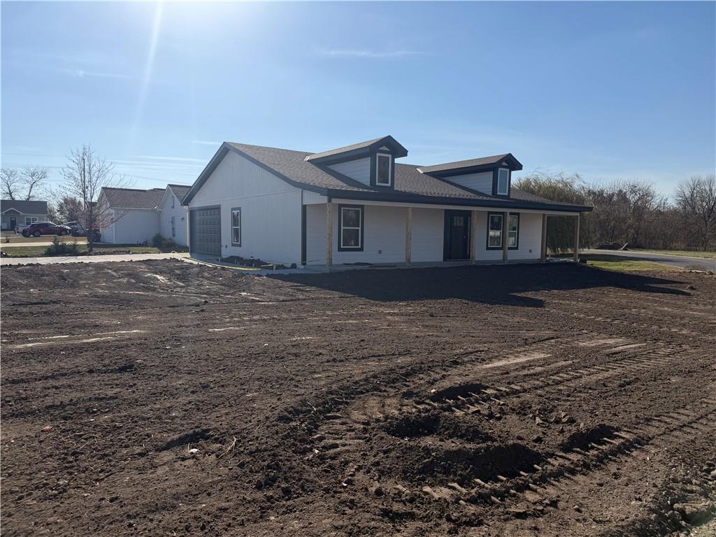 This charming farmhouse-style home welcomes you with a covered front porch and thoughtful design throughout. Featuring 3 bedrooms, 2 bathrooms, and 2 Car garage. The functional split bedroom layout allows for privacy . LVP flooring through out the main living areas and cozy carpet in the bedrooms. The spacious master suite provides comfort and privacy, while both the master suite and 2nd bedrooms include large walk in closets. Enjoy cooking in the kitchen with tons of cabinet space and oversized kitchen island that opens to the great room. ***AS OF 11/18 HOME IS IN FINAL ELECTRIC AND FLOORING ****