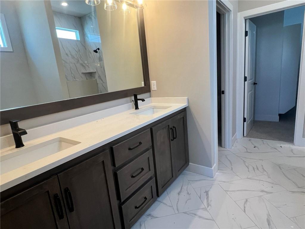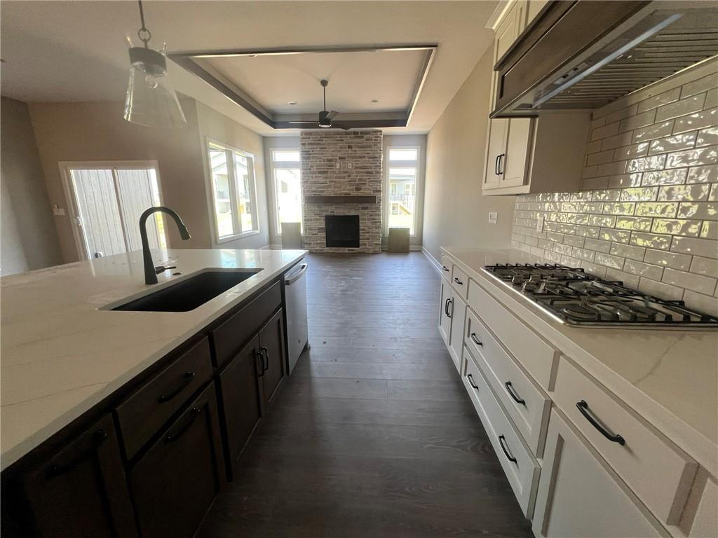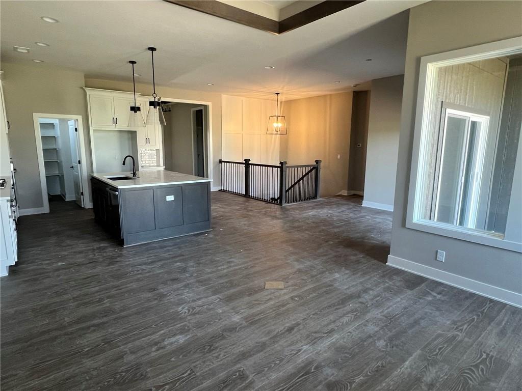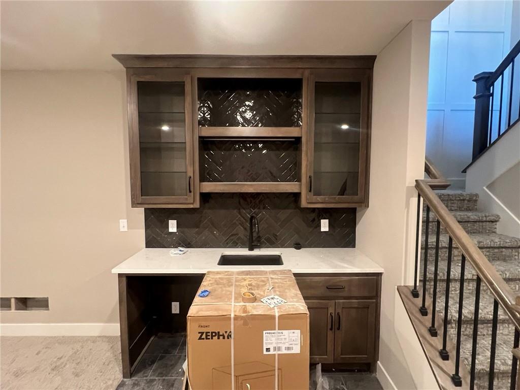 Introducing The Cambridge—the newest Reverse 1.5 Story floorplan by award-winning builder Inspired Homes, located in the highly desirable Pryor Ridge community. This beautifully designed 4-bedroom, 3-bath home offers the perfect blend of luxury, comfort, and everyday functionality. Step into a bright, open layout with a wide entry, dramatic staircase, 10' ceilings, and large windows that fill the home with natural light. The chef-inspired kitchen features quartz countertops, designer tile backsplash, soft-close cabinetry, a large island, and a walk-in pantry—perfect for entertaining. The great room boasts a stone fireplace and opens to a covered patio and flat backyard, ideal for outdoor living. Main level traffic areas boast Revwood throughout -- a high quality and durable laminate flooring. The main-level primary suite offers a spa-like bath with a 6’ soaker tub, walk-in shower, dual vanities, and a walk-in closet with direct laundry access. The finished lower level includes a rec room, wet bar, two bedrooms, full bath, and generous storage. Located just minutes from Downtown Lee’s Summit, lakes, trails, shopping, dining, and top-rated schools. BUY WITH PEACE OF MIND, the convenience of new construction backed by a 2-10 Home Warranty, offering 10 year structural, 2 year mechanical, 1 year workmanship Please excuse our dust—this home is in its final Quality Assurance stage!
