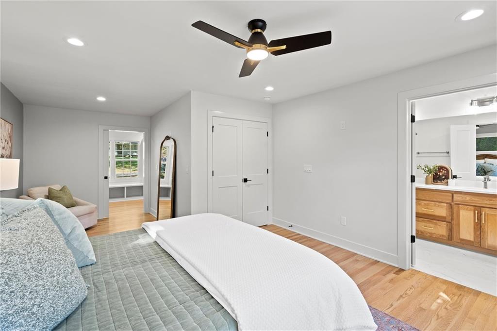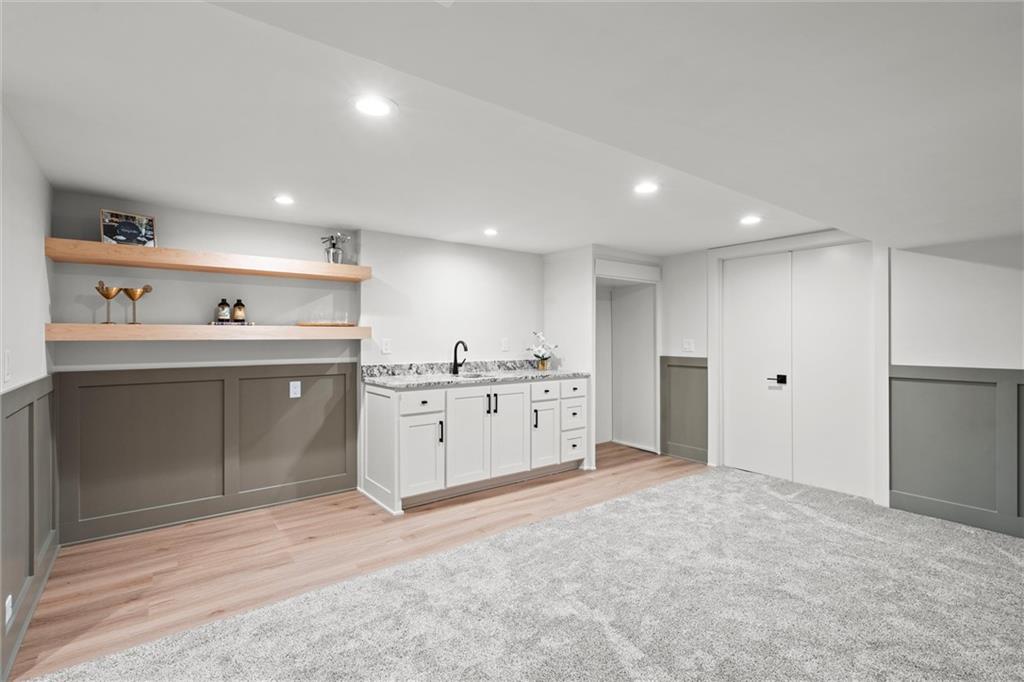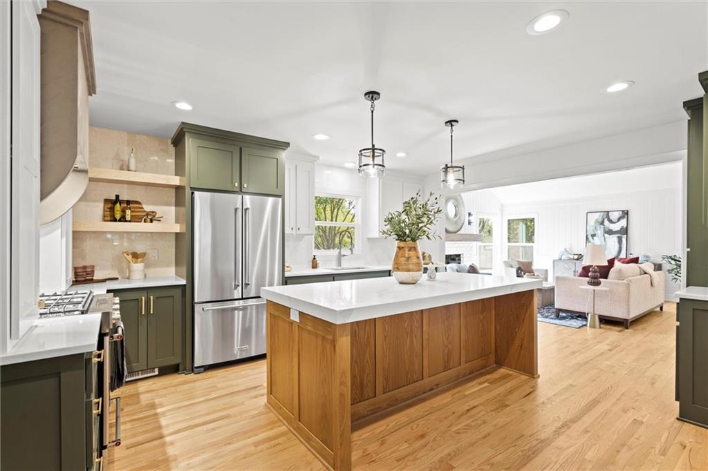 Villa style living could be yours before the holidays! Boasting a ranch/reverse 1.5 story floor plan, every inch has been thoughtfully renovated with modern touches yet timeless style. This home offers 4 spacious bedrooms and 3.5 pretty as a picture bathrooms. You will fall in love with the built-in's, custom crafted cabinetry, vaulted ceilings, flexible floor plan, designer touches and everything is NEW! Stunning double front doors and bright foyer showcase french doors leading into a stately office or den. Enter the gorgeous vaulted living room and hearth flanked by windows overlooking the half acre yard complete with a freshly stained deck, pergola and firepit too. The custom kitchen has a grand quartz island, gas stove with hood, floating shelves and walk in pantry. It leads into everyone's favorite breakfast/dining room. Holiday dinners will be perfect in here when everyone gathers around the table and grabs a drink and an appetizer from the built in buffet with arch and floating shelves. The primary en suite also has a sitting area and walk in custom closet with stackable hook-ups. The shower is the star in the primary bath. There is one additional large bedroom on the main level with full hall bath showcasing a soaking tub, separate shower and double vanities. The expansive walkout/walkup lower level has room for everyone including the two remaining bedrooms, well appointed full bathroom, large laundry room, and a lovely kitchenette. Do not miss out on the opportunity to own a rare gem in one of Leawood's most desirable locations and neighborhoods. Seller is ready for an offer.