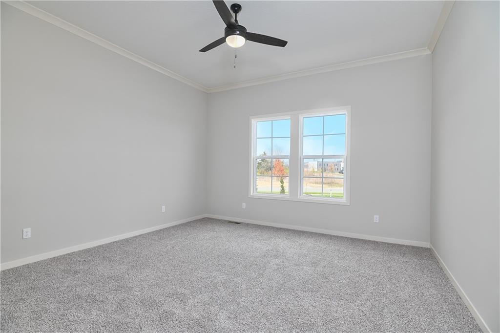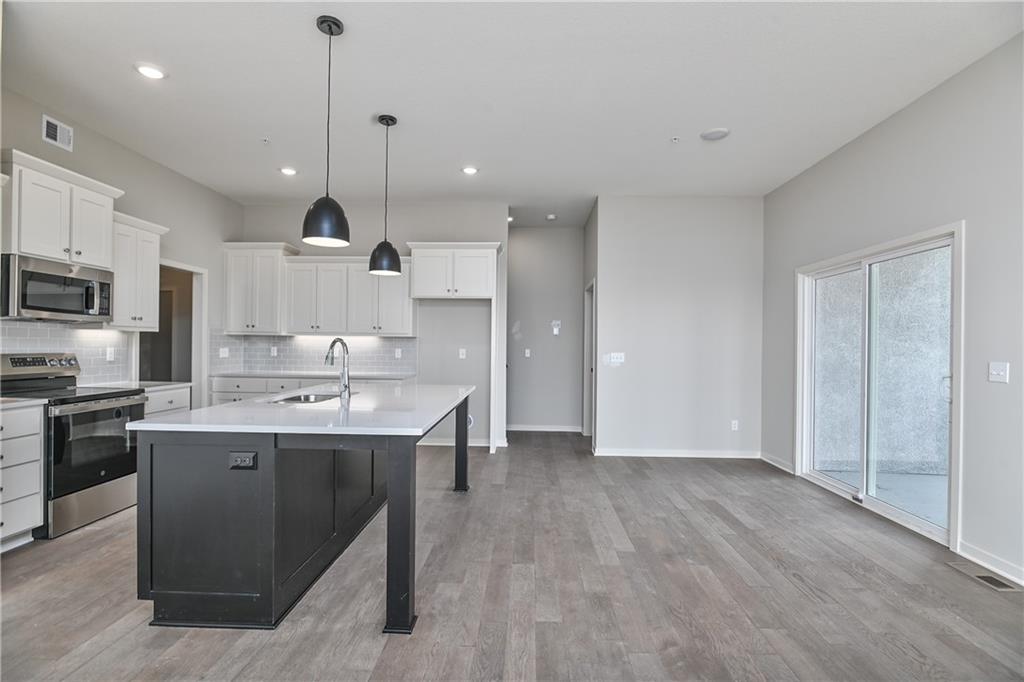 Move-in Ready Maintenance Provided Ranch Villa! This stunning home features an open floor plan with 10’ ceilings, hardwood floors, and a light-filled living room with stone fireplace. The gourmet kitchen includes stainless steel appliances, custom cabinetry, under-cabinet lighting, and a walk-in pantry, plus a main-level mudroom and built-in desk area. The primary suite offers a walk-in closet and beautifully tiled bath. The lower level adds a spacious rec room with dry bar, two additional bedrooms, and a full bath—totaling four bedrooms. Lawn care, snow removal, and exterior maintenance (including roof) are all included.