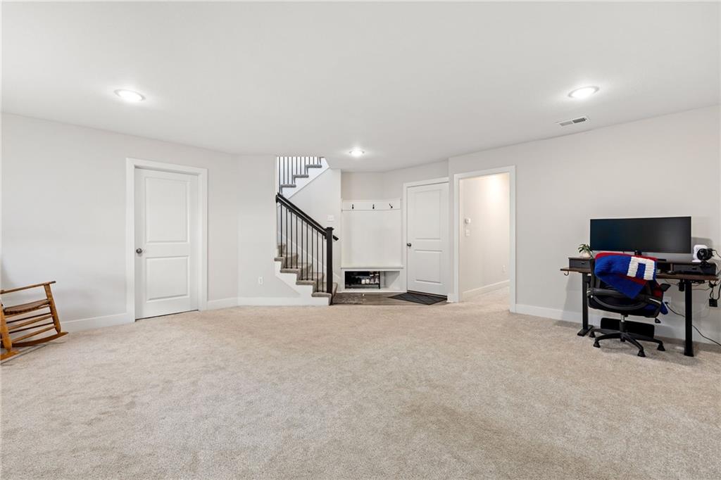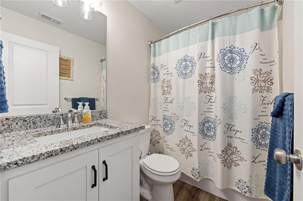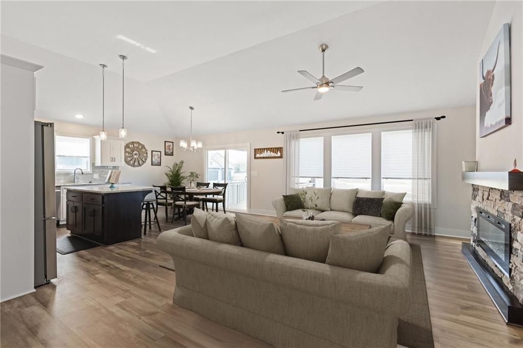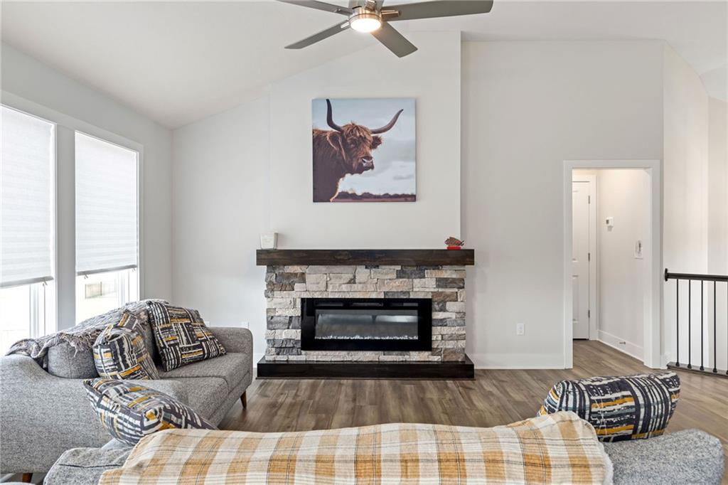 Located in the desirable Woodland Creek community, this beautifully maintained 4-bedroom, 3-bath home combines modern design with everyday functionality. The open-concept main level features a bright living area with a linear fireplace, large windows, and luxury vinyl plank flooring, flowing seamlessly into the kitchen with granite countertops, stainless steel appliances, and a spacious walk-in pantry. The primary suite offers a walk-in closet, double vanity, and private water closet, while two additional bedrooms on the main level provide flexibility for various needs. The finished lower level includes a large family room, fourth bedroom, full bath, and generous storage. Outdoor highlights include a fully fenced backyard, custom deck stairs, and mature lawn. Situated within the Smithville School District, residents enjoy a growing neighborhood with a community pool, convenient highway access, and a welcoming sense of connection. This home is move-in ready and thoughtfully upgraded for modern living.