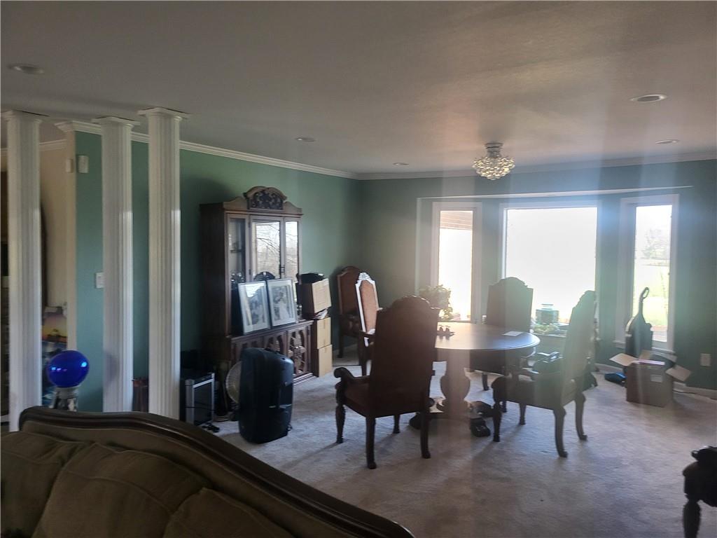 Lovely well maintained home on ten slightly sloping acres with some trees. Close to the city, but out in the country. schools close by for the kids. security system for extra safety in a lovely location. large bedrooms freshly painted. three car garage two floor level one in basement. two HVAC to keep you warm in winter cool in summer. over 3,900 sq ft of living space. large open kitchen with island. next to kitchen wide open large front room. In addition a large 4,800 sq ft outbuilding. the house sits way back from hwy so very quiet.