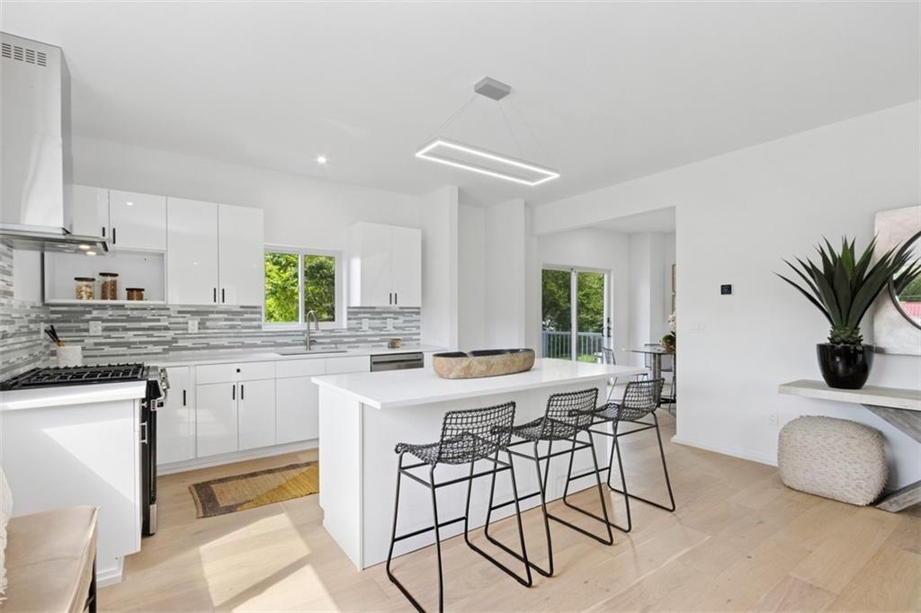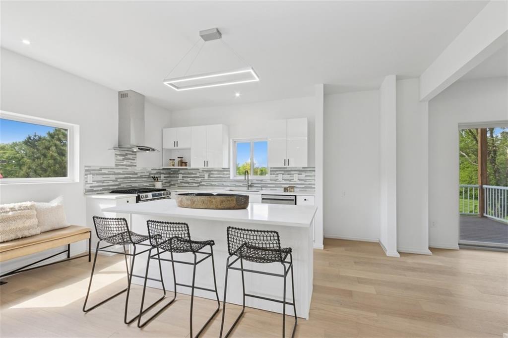 Smashing modern design. Sleek and effortlessly cool — this stunning modern home boasts crisp white lines, designer finishes, and incredible natural light throughout. This flexible layout features a beautiful sleek white kitchen with gas cooktop ,a big island and dining area that opens on to the main level deck, creating a seamless connection between indoor comfort and outdoor living. Upstairs boasts 2 bedrooms plus a loft and another private deck. The walkout lower level offers a beautiful 3rd en-suite bedroom bath and flex space that opens onto lovely patio and yard. With standout curb appeal and thoughtful upgrades at every turn, this home blends modern luxury with everyday functionality.