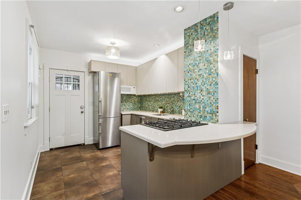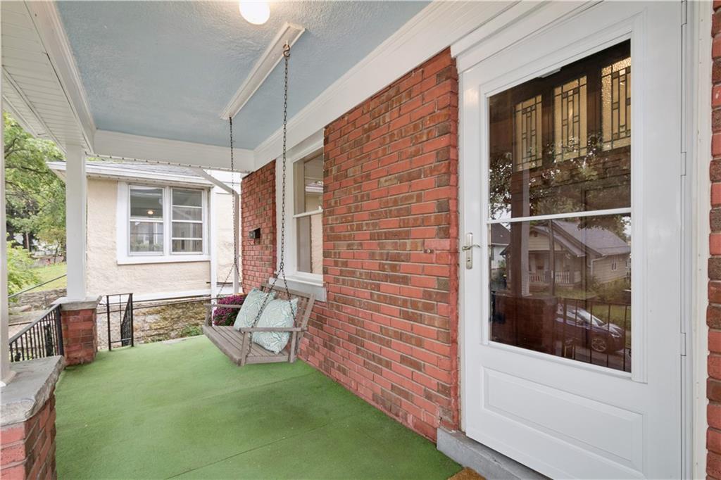 Charming Brick & Stucco Bungalow with Modern Updates! Inside, you'll find an open, airy floor plan featuring original hardwood floors and an abundance of natural light that fills the space. The remodeled Kleweno kitchen (2014) is a true highlight, offering a convenient breakfast bar that’s ideal for quick meals or entertaining guests. The spacious entryway is complemented by generous closet space, providing ample storage. The front bedroom boasts a large walk-in closet, perfect for all your wardrobe needs. All appliances are included, making moving in a breeze. Tons of updates including brand-new 97% efficient 2 stage HVAC, fresh paint throughout, new windows in living room, new Pella exterior doors, Roof 8 years. Relax and take in the scenic views from the inviting front porch, perfect for unwinding after a long day or enjoy the fenced back yard! Located in a highly sought-after area, this home is just a short distance from the vibrant Plaza and Westport, offering easy access to shopping, dining, and entertainment.