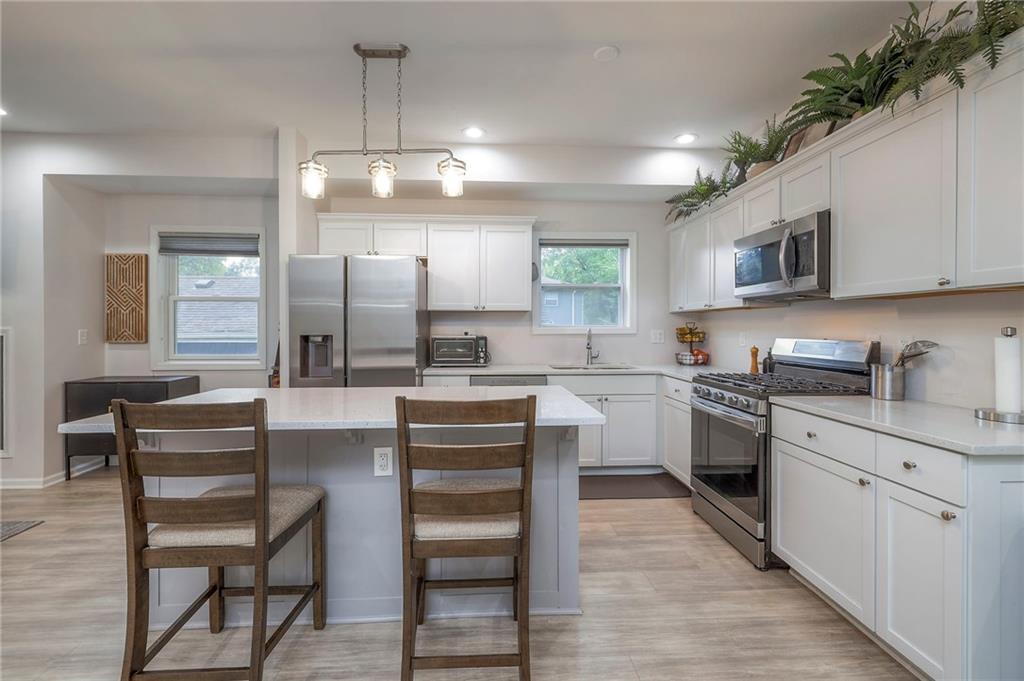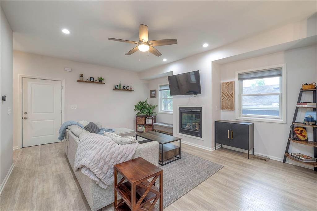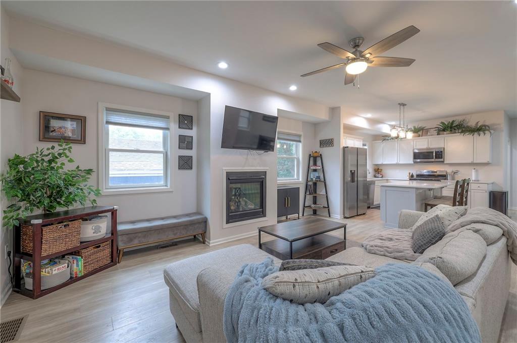 This almost new 2-story home in Waldo offers 3 bedrooms, 3.5 baths, and an open-concept layout in a prime location just minutes to The Plaza, and the Power and Light District. The main level features a light, neutral palette, a cozy fireplace, and a stylish kitchen with stainless steel appliances (including gas range), quartz countertops, and an oversized island—perfect for gatherings. Upstairs, the primary suite is a true retreat with a private deck off the bedroom, huge walk-in closet, and spa-like bath. Laundry is conveniently located on the bedroom level. The finished lower level with half bath offers flexibility for a home office, rec room, or movie nights. Outside you'll find a great backyard including a patio and a wood fence, creating a private backyard oasis for pets, play, or entertaining. This home is only 3 years old! Move-in ready and waiting for you! Buyer to verify taxes, square footage, and schools.