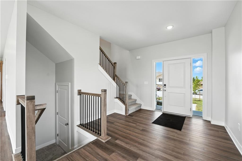 Welcome to the Serenity floor plan by Avital Homes! This beautiful 2-story home offers 4 bedrooms, 2.5 bathrooms, and a spacious 3-car garage. The main level is warm and inviting with hardwood floors throughout and a stylish 50" linear electric fireplace that makes the living area feel cozy and welcoming. The kitchen is a chef’s delight with an upgraded tile backsplash, expanded cabinetry choices, and handy features like a pull-out trash bin drawer. Upstairs, you’ll love having all four bedrooms and the laundry room together, including a bright and airy primary suite with transom windows and a spa-like bath featuring tiled shower walls and upgraded finishes. Thoughtful details such as sculptured stair carpet, enhanced plumbing fixtures, and a full irrigation system add both comfort and convenience. Designed with modern living in mind, this home blends style, function, and charm all in one. Pictures are of a previously finished home.