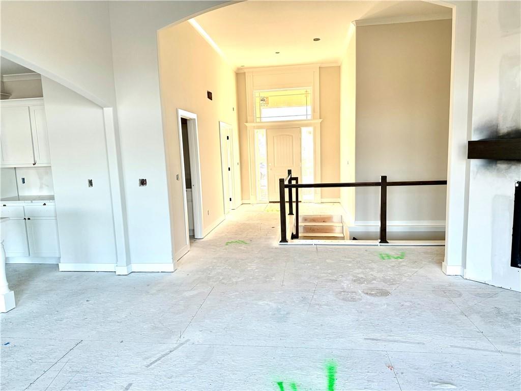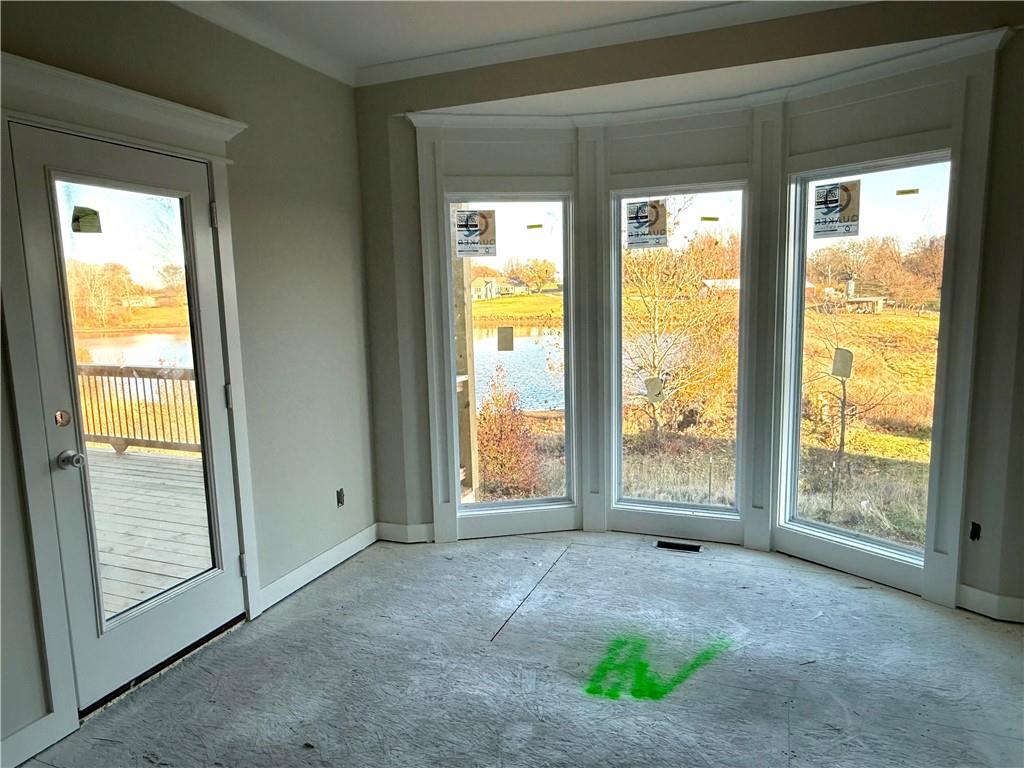 The "NOAH" by Robertson Construction! Positioned on a PREMIUM LAKE-BACKED LOT offering an outstanding view! This Stunning Reverse 1.5-Story offers 2822 sq. ft. with a beautifully designed living space and exceptional detail throughout! Floor-to-Ceiling windows overlook the backyard creating a seamless connection between indoor and outdoor living! The open concept design features a Corner Stone Fireplace, Real Hardwood Floors, Private Master Suite with a Luxurious Bath, Walk-in Shower, Huge Soaker Tub and access to the Laundry Room which is complete with a utility sink. Bedroom 2 is also on this level, ideal as a guest room or home office and 2nd Full Bath. The gourmet Kitchen is well designed with Custom Built Cabinets, Solid Surface Countertops, and Walk-in Pantry. The oversized Deck has easy access from both the Breakfast Room and Master Suite. A Finished Lower Level WALKOUT offers more Floor to Ceiling Windows, WET BAR with Beverage Fridge, 2 more Bedrooms, 2 Baths, Family Room and a GENEROUS AMOUNT OF STORAGE in 2 STORAGE ROOMS. Patio at the Walkout offers another great view leading to the backyard.