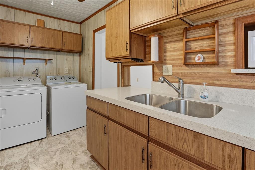 This charming bungalow is packed with updates and ready for its next owner! Featuring two bedrooms and one full bath, this home includes a brand-new refrigerator, washer, and dryer, along with a newer stove and microwave. The granite countertops, paired with a new sink and faucet, create a modern and stylish kitchen you’ll love to cook in. The entire interior has been freshly painted, giving the home a crisp, clean feel. The oversized family room provides plenty of space for large furniture and gatherings, while the separate dining area and pantry add extra convenience. The basement, covered by a Recovery Foundation warranty, is clean and dry—perfect for storage or future finishing. Enjoy mornings on the newly built, covered front deck or relax on the back patio that leads to a detached two-car garage. With brand-new windows throughout and a solid exterior, this home is cozy, inviting, and move-in ready. Located just minutes from NKC Hospital, with easy access to major highways, and no Kansas City earnings tax, this property offers both comfort and convenience!