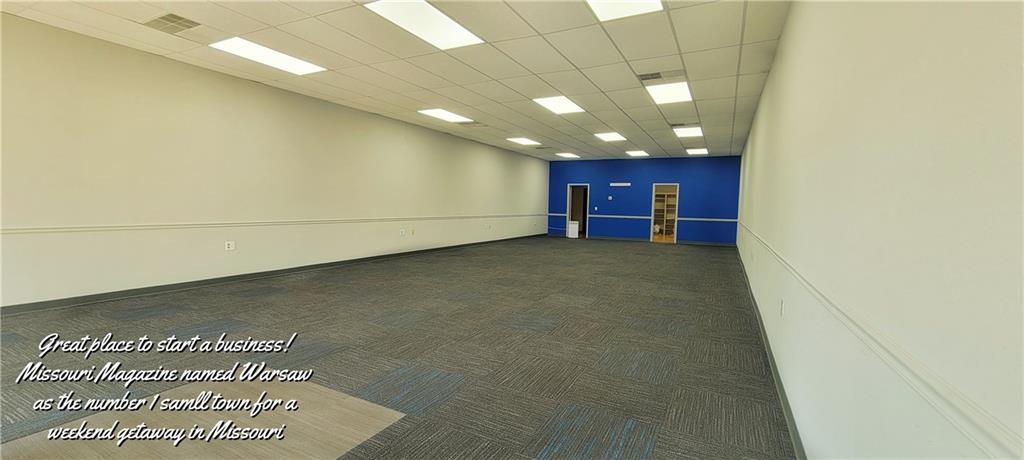 1675 Sq ft in this beautifully remodeled commercial property located at the 4 way stop on main street in the busy Lake of the Ozarks community of Warsaw, MO! Plenty of room in this expansive building for retail or offices. Nicely redone to include a 1/2 bath & plenty of storage & shelving. The back room also has a separate entrance, for a possible sublet. The expansive store front area is set up with high speed fiber optics at several locations & low maintenance LED lighting. The roof was replaced in 2024, interior & exterior has been recently painted. Newer Zoned HVAC System, flooring & pex plumbing. This building is ready for business! This wonderful lake community has won several Awards, including Governor's Tourism Award, National Complete Streets Coalition Award, also named "Great Place in Missouri" by the American Planning Association. The building backs up to the historic community building and Drake Harbor, the winner of the 2025 "Best Public Park" award by Heartland Choice Awards. Your business will thrive in this bustling little lake community! Many downtown businesses including restaurants & small boutiques. The many community events brings in thousands of visitors every year. Warsaw, MO is a great place to live & start a new business! The possibilities are endless! Don't let this one get away!