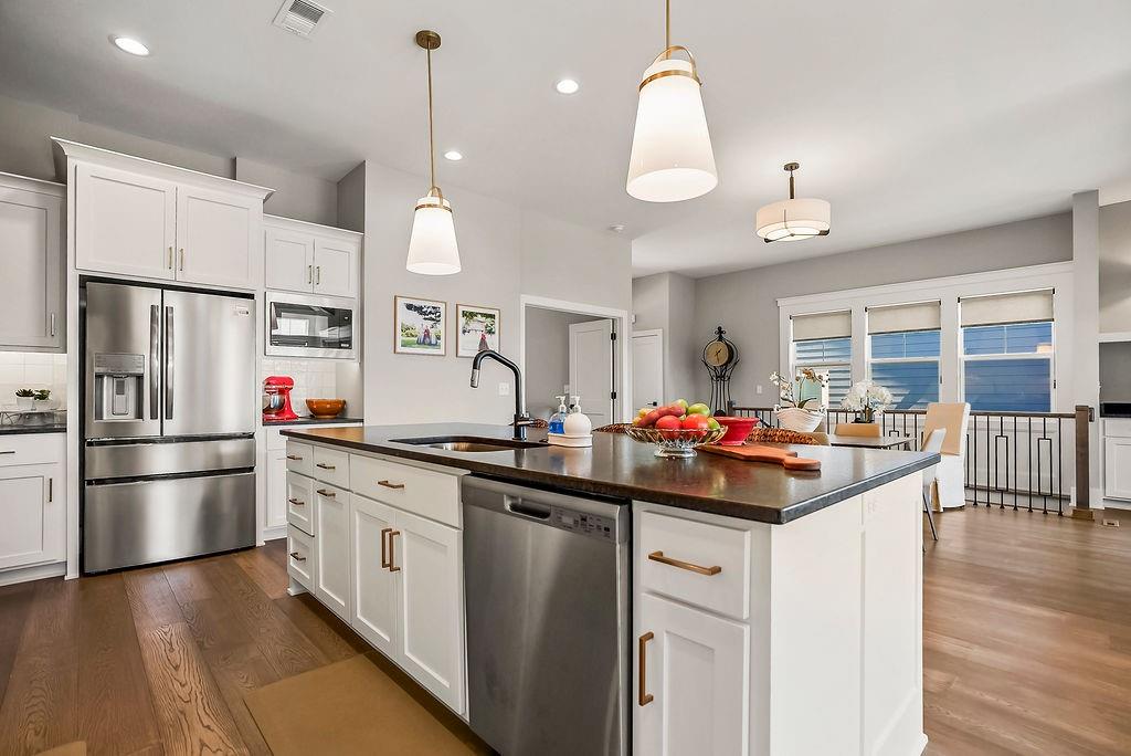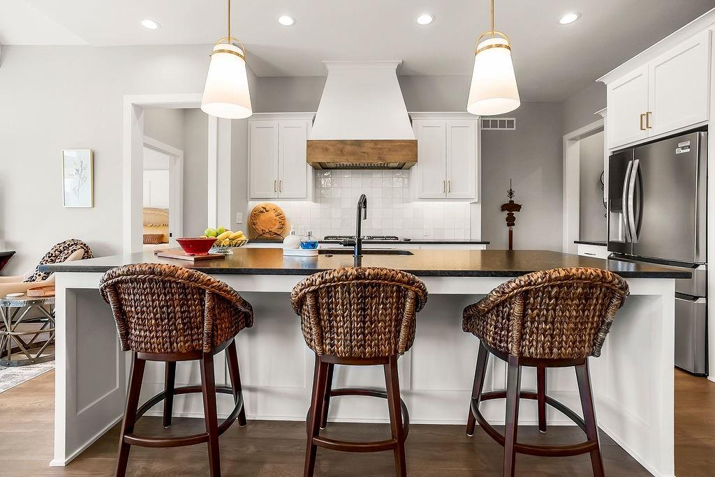 Move-in ready and priced $50,000+ below today’s production cost, this maintenance-provided villa in Chapel Hill is one of the best values in south Overland Park. The popular walkout reverse 1.5-story layout offers 3 bedrooms, 3 baths, and more than 2,500 square feet of finished living space—including a lower-level rec room, bedroom, and full bath. You’ll love the tall ceilings, open floor plan, fireplace, custom blinds, and a chef’s kitchen with painted cabinets, island, pantry, and stainless appliances. The spacious primary suite features a spa-like bath and generous walk-in closet. Enjoy worry-free living with lawn care and snow removal included. Chapel Hill residents also have access to two community pools, scenic walking trails, pickleball courts, and a clubhouse. Located in the sought-after Spring Hill School District and tucked inside one of Overland Park’s premier neighborhoods, this villa delivers style, comfort, and unmatched value.