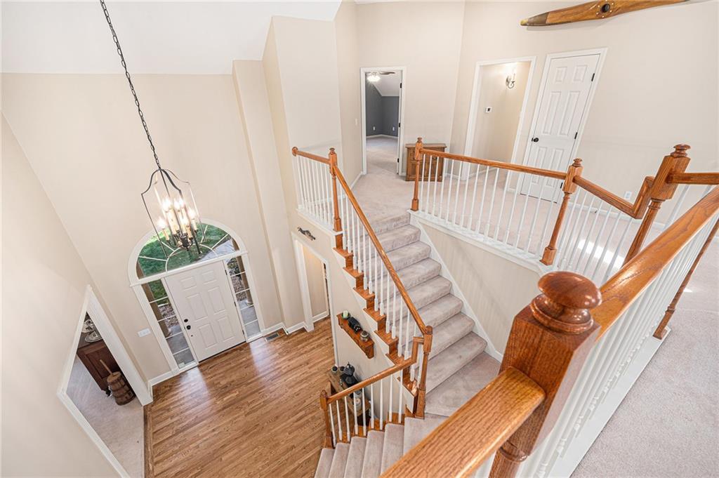 Discover this one-owner custom-built home nestled on 7.3 picturesque acres with a beautiful 1.5 acre shared pond. Featuring 4 bedrooms and 3.5 baths, this home is designed with both comfort and function in mind. The main floor features a spacious primary suite complete with a private sitting room, a well-appointed kitchen with quartz countertops, stainless steel appliances, hearth room, and Anderson windows that fill the home with natural light. Convenient main floor laundry adds ease to daily living. Upstairs, you'll find generous-sized secondary bedrooms along with a versatile loft space perfect for an office, playroom, or second living area. The unfinished basement, stubbed for a bath, provides endless opportunities for expansion. Outside, a 40x50 shop with two 12' doors, concrete floor, and electricity offers ideal space for hobbies, storage, or a small business. This property combines peaceful country living with modern amenities.